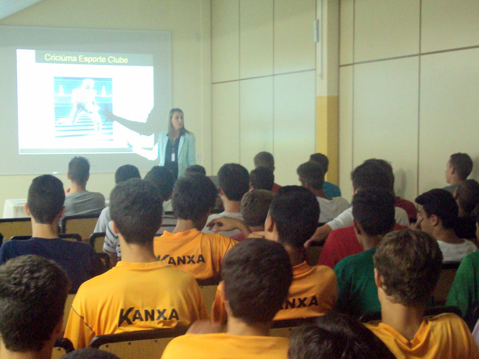 A palestra foi a quarta da Semana Interdisciplinar. Francinéli explicou o objetivo do encontro desta sexta-feira. “A psicologia não significa apenas trabalhar as dificuldades dos atletas, mas também as potencialidades, melhorando a atenção, concentração e confiança. Isso para quando chegar ao profissional, eles possam lidar com a tensão do mundo do futebol”, afirma a psicóloga.