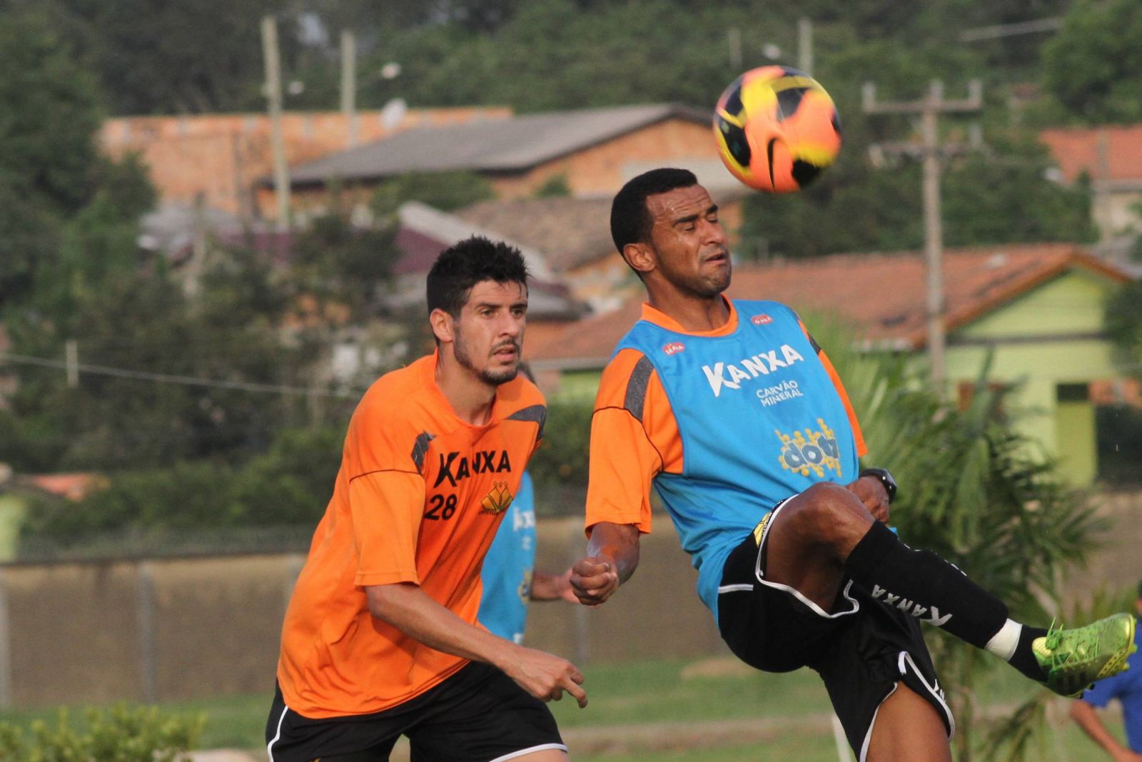 Maylson e Serginho durante treino no CT. Foto: Fernando Ribeiro/www.criciumaec.com.br