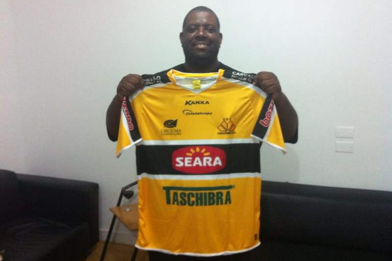 Cantor Péricles com a camisa do Tigre. Foto: Divulgação/www.criciumaec.com.br