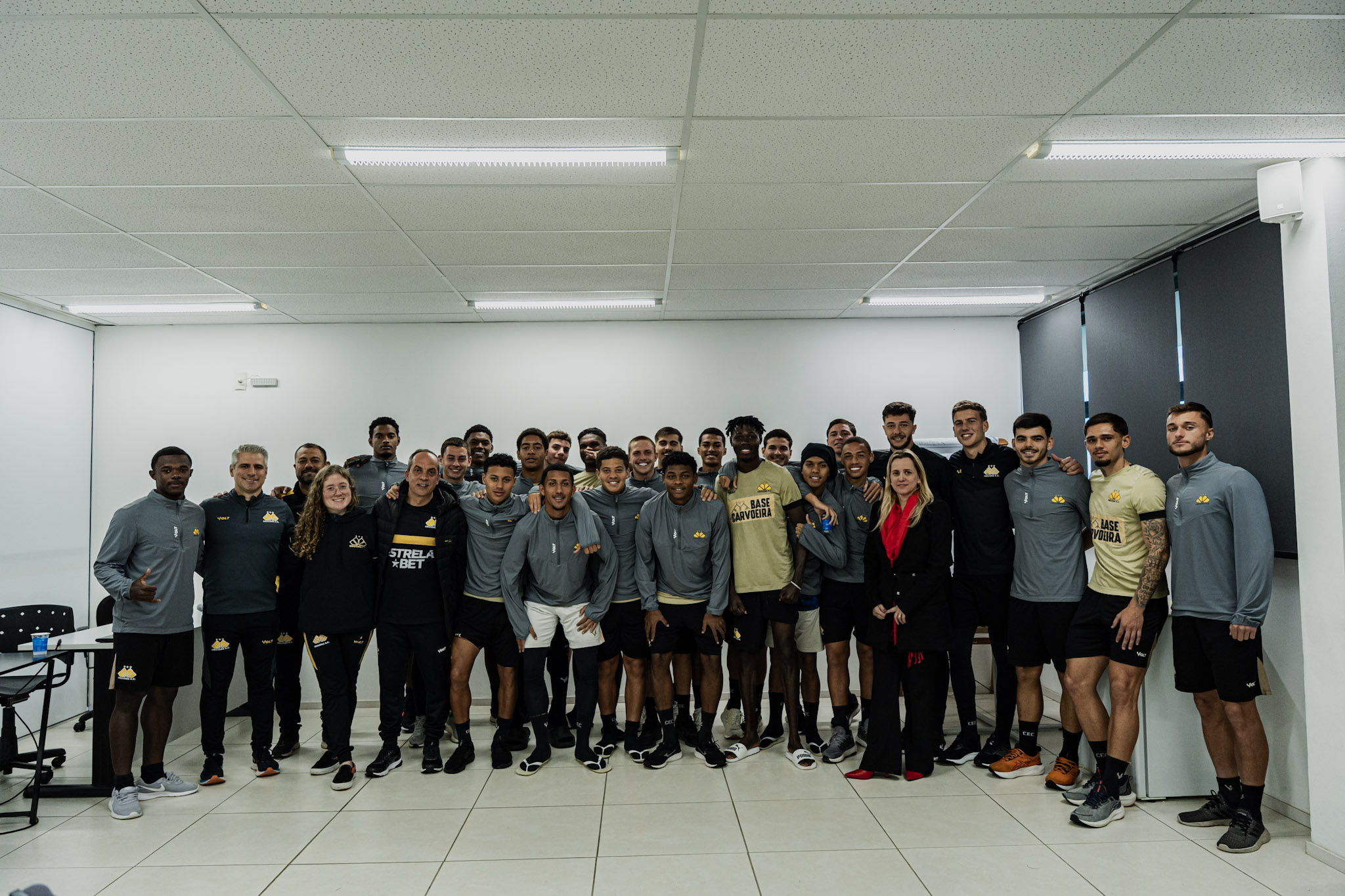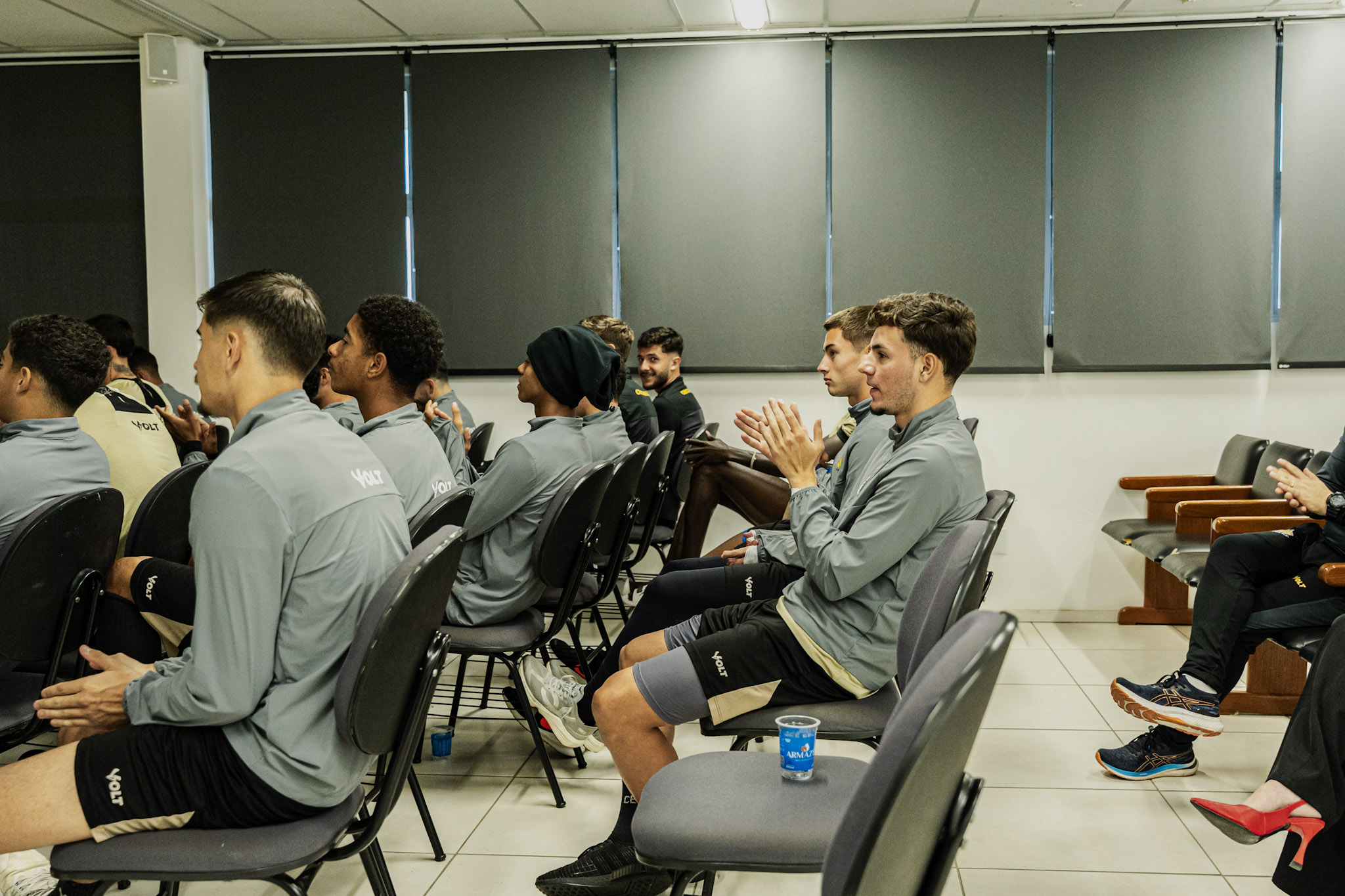 O Criciúma promoveu uma palestra institucional voltada aos atletas das categorias Sub-15, Sub-17 e Sub-20 com foco em orientações preventivas relacionadas à saúde física e ao bem-estar no contexto esportivo. A ação foi conduzida pelo fisioterapeuta do clube, Fabrício G. de Oliveira, com apoio da estagiária Laura Scherer, e organizada pela assistente social Fabiana Iraci.