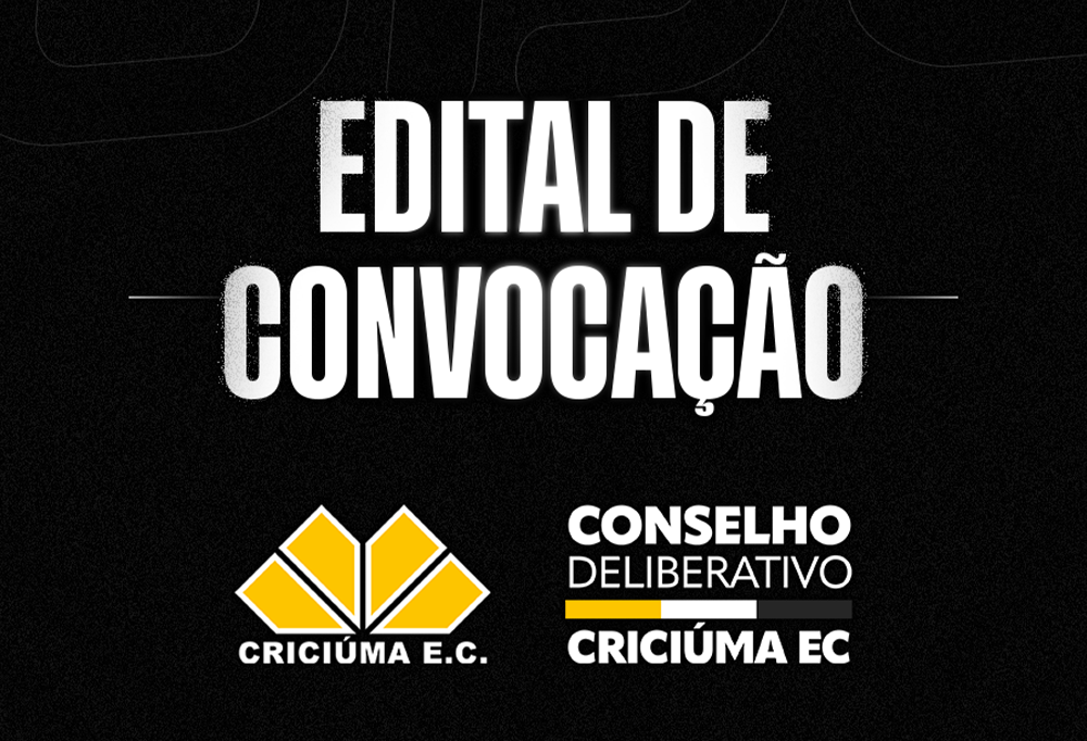 O Presidente do Conselho Deliberativo do Criciúma Esporte Clube, no uso das atribuições conferidas pelo Estatuto Social, especialmente nos termos dos artigos 65, XVIII e 68, II, “a” e art. 46, V do Regimento Interno do Conselho Deliberativo, convoca todos os membros para Reunião Extraordinária a ser realizada no dia 06 de outubro de 2025 (segunda-feira), na sede da Associação Comercial e Industrial de Criciúma – ACIC, localizada na Rua Ernesto Bianchini Góes, nº 91 – Bairro Próspera, Criciúma/SC.