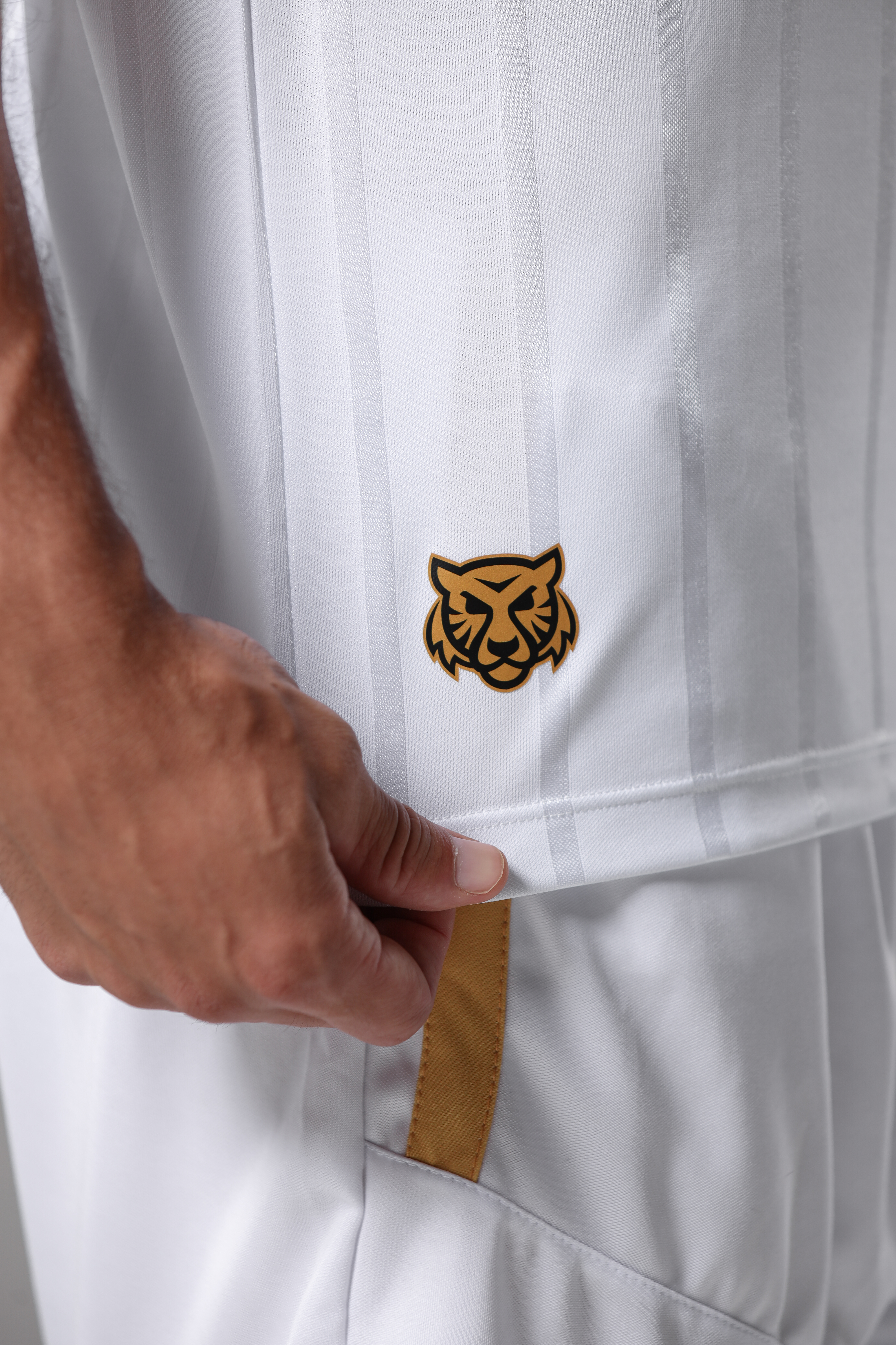 O Criciúma Esporte Clube lançou neste domingo (22/02) sua nova Camisa 2 para a temporada de 2026. Produzida em parceria com a Volt Sport, o modelo combina elegância com a identidade do Tigre em um visual moderno. Predominantemente branca, a camisa apresenta tecido jacquard com listras aplicadas na parte frontal, mantendo as costas e as mangas lisas.