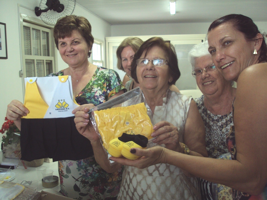 O Bercinho do Amor existe há mais de 20 anos. As voluntárias se reúnem semanalmente para produzir enxovais infantis para crianças carentes. A partir do próximo ano, cada enxoval terá uma peça do Criciúma. A gerente comercial do Criciúma, Viviani Olimpio, aponta o objetivo das doações.