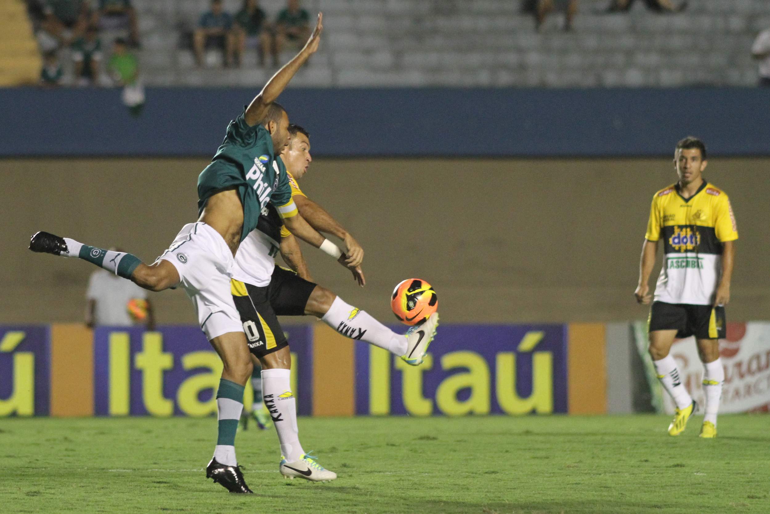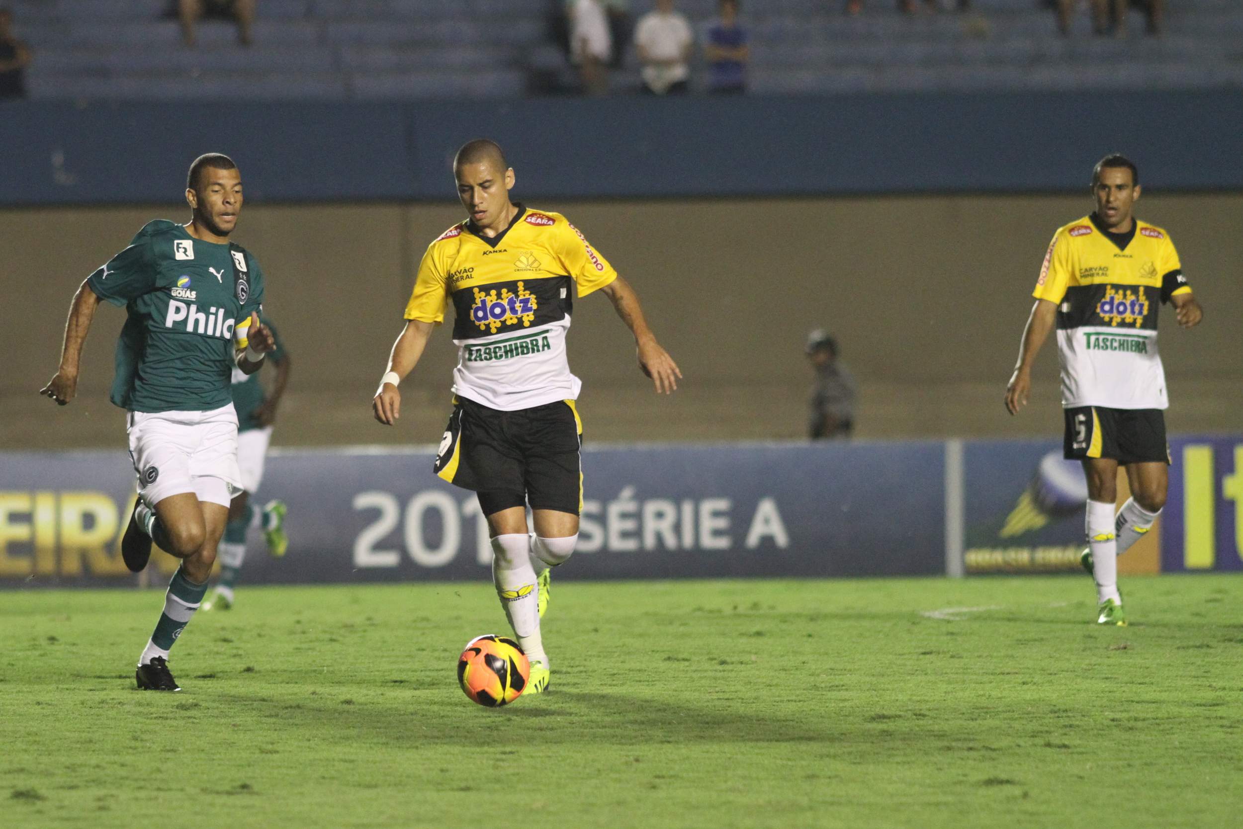 O Criciúma entrou em campo precisando da vitória para se recuperar no Campeonato Brasileiro e abriu o placar logo no primeiro lance de ataque, aos dois minutos de jogo. Lins recebeu passe na entrada da área e chutou no canto para marcar o gol do Tigre, sem chances para o goleiro do Goiás. Aos 29 minutos, Walter cobrou falta e marcou o gol de empate do time goiano. O Criciúma ainda criou boas chances na primeira etapa em cabeçadas de Wellington Paulista e Matheus Ferraz, mas o goleiro Renan salvou o time goiano.