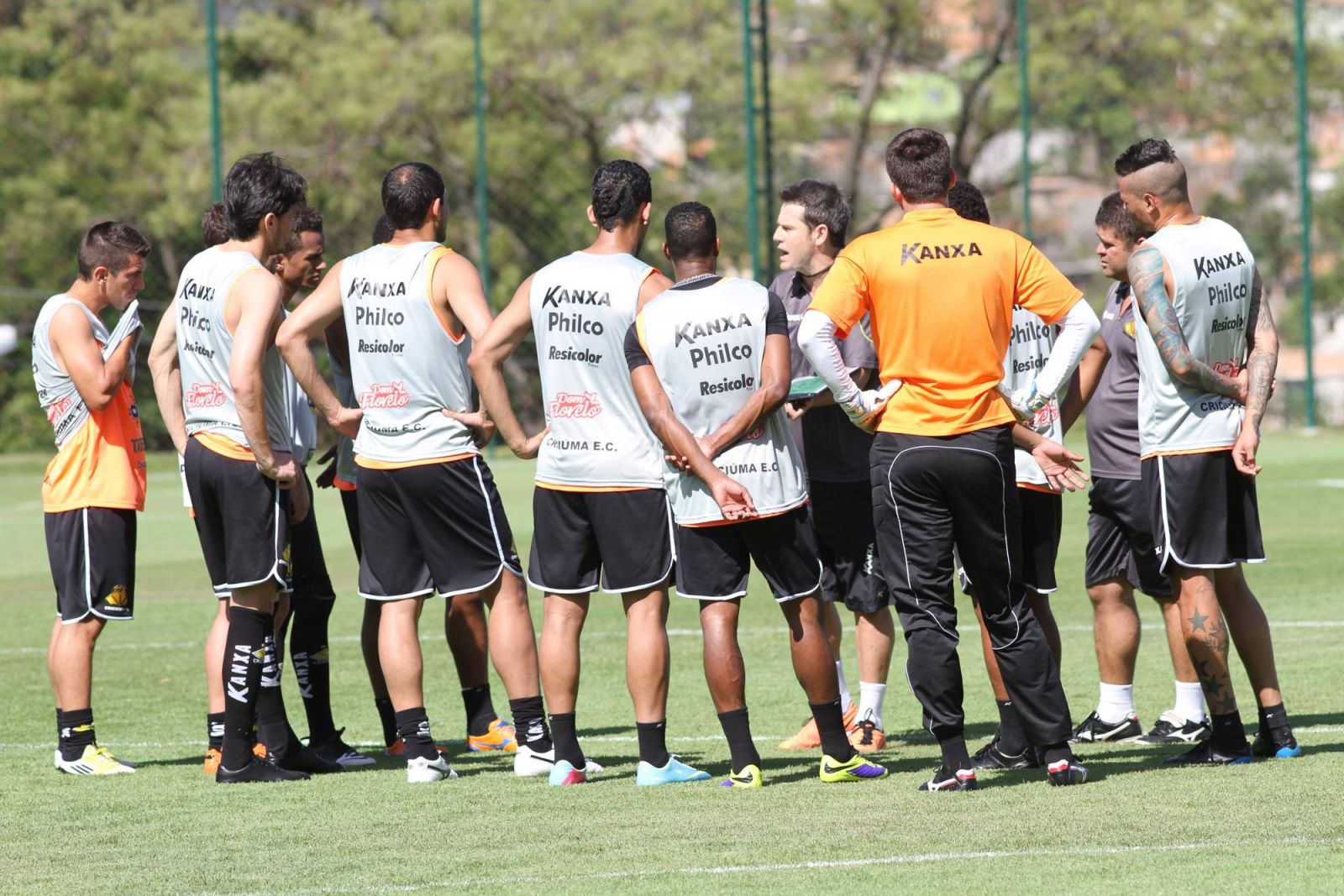 Argel Fucks conversa com atletas durante treino. Foto: Fernando Ribeiro/criciumaec.com.br