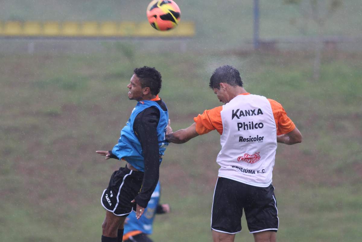Debaixo de chuva o Criciúma fez na tarde desta quinta-feira (03/10) um trabalho coletivo no Centro de Treinamento, localizado no bairro Cristo Redentor. O técnico Argel Fucks tem buscado armar o time para o duelo de domingo (06/10), às 18h30min, contra o Goiás, no estádio Serra Dourada, em Goiânia (GO).