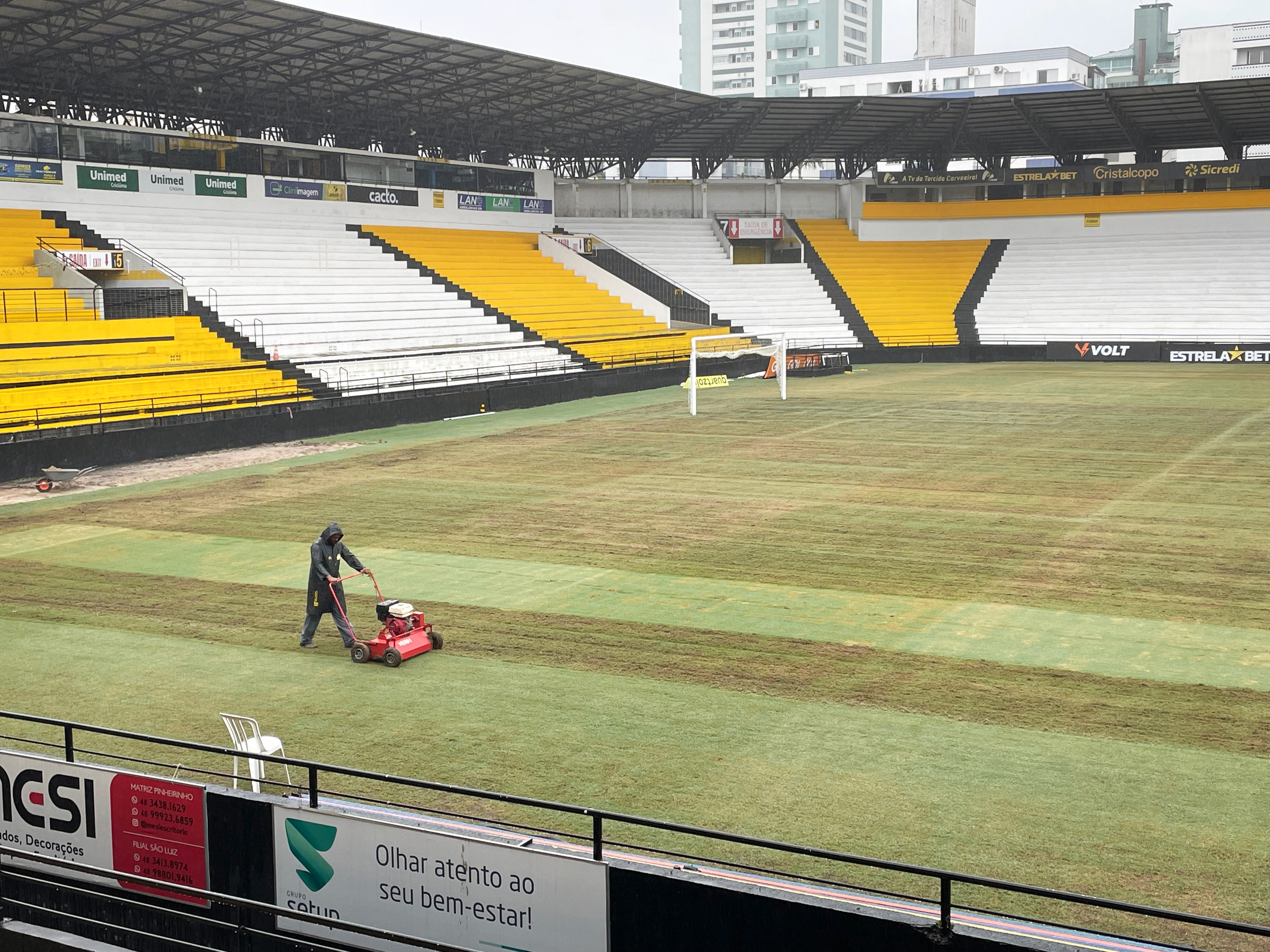 O gramado está passando por um processo de drenagem, para a implementação de uma espécie de grama de inverno, no qual é conhecido por sua resistência às baixas temperaturas. As gramas estão sendo cortadas em altura reduzida para receber as sementes de azevém. Essa medida tem como objetivo evitar o aspecto desgastado e queimado do gramado durante o período de inverno, proporcionando uma melhor qualidade para as partidas e treinos. É importante ressaltar que os gramados do Centro de Treinamento Antenor Angeloni, também estão sendo revitalizados.