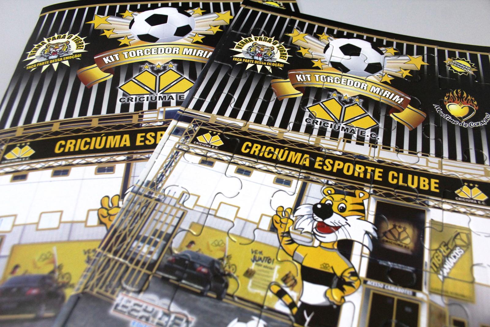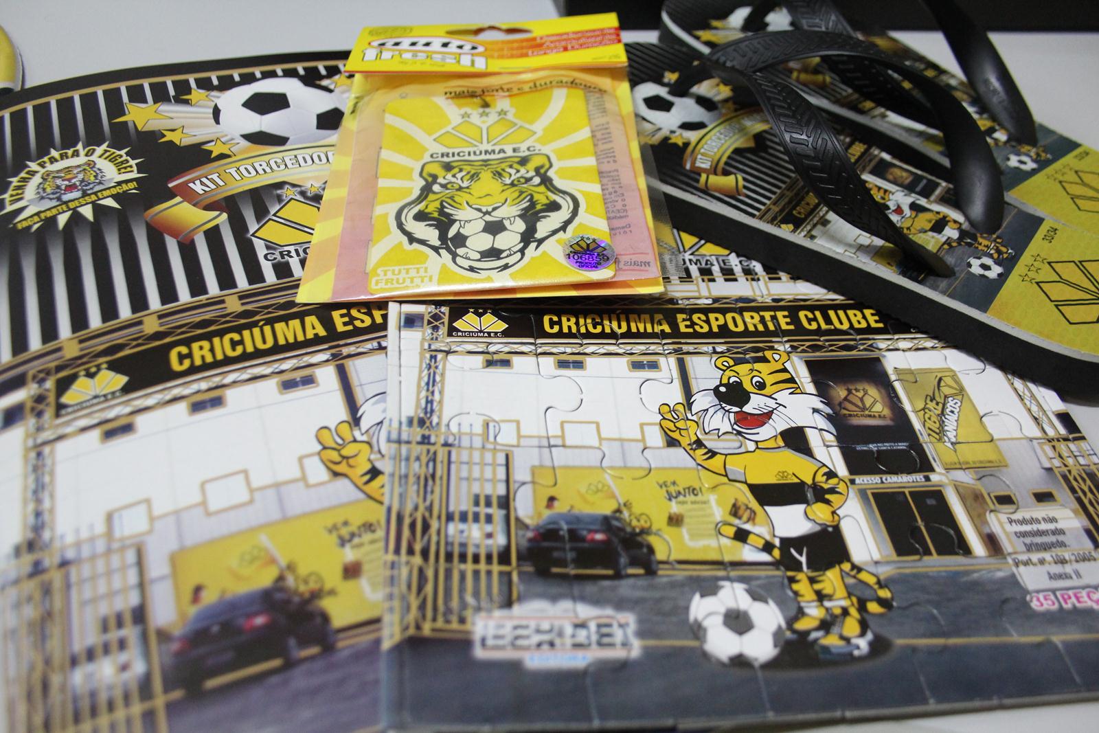 Já o kit infantil é produzido pela editora Lex Dei, de Criciúma. Ele contém um chinelo, um quebra-cabeça e uma revista de atividades. Com ela, as crianças podem desenvolver a criatividade colorindo os desenhos, além de aprender com as tradicionais brincadeiras do labirinto, jogo dos sete erros, caça palavras, entre outros. A revista também apresenta a história do clube e traz curiosidades sobre o time e o futebol em geral. Este kit será disponibilizado ainda este mês para os pequenos torcedores.