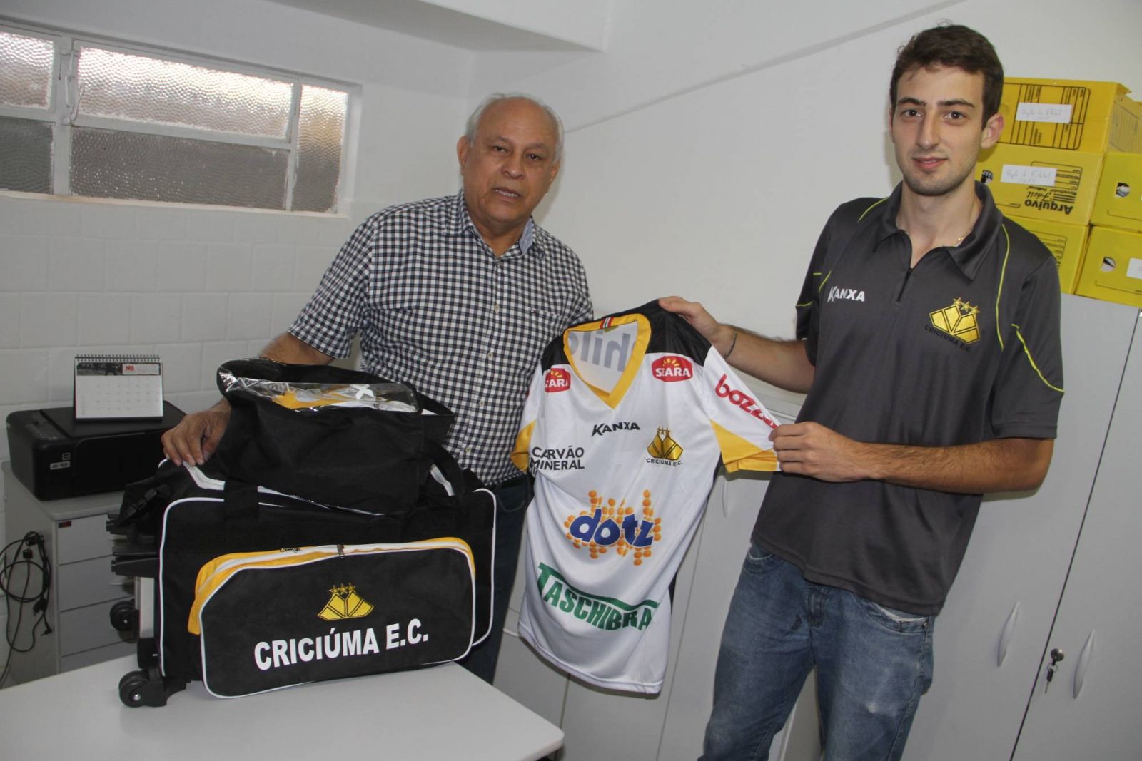 Aderbal Cabeça recebeu o material do clube. Foto: Fernando Ribeiro/criciumaec.com.br
