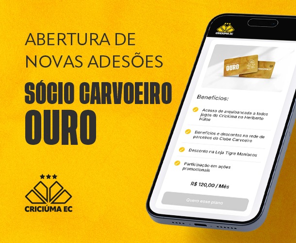 O Criciúma Esporte Clube reabriu, de forma limitada, as adesões ao Plano Carvoeiro Ouro. Ao todo, são apenas 300 vagas disponíveis para arquibancada.