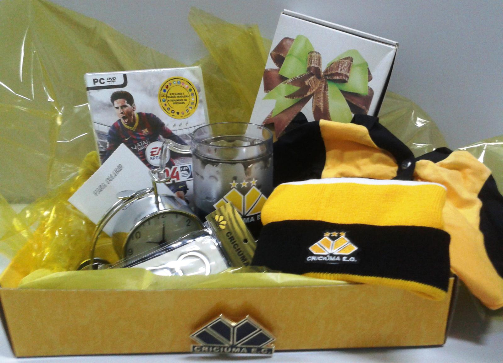 O kit que será entregue ao sócio vencedor terá produtos como chaveiro, kit infantil, jogo FIFA 2014 para PC, gorro, caneca gel, adesivo, roupa para cachorro e um relógio em forma de bicicleta. O nome do sócio ganhador será divulgado nos canais de comunicação oficiais do Criciúma Esporte Clube.