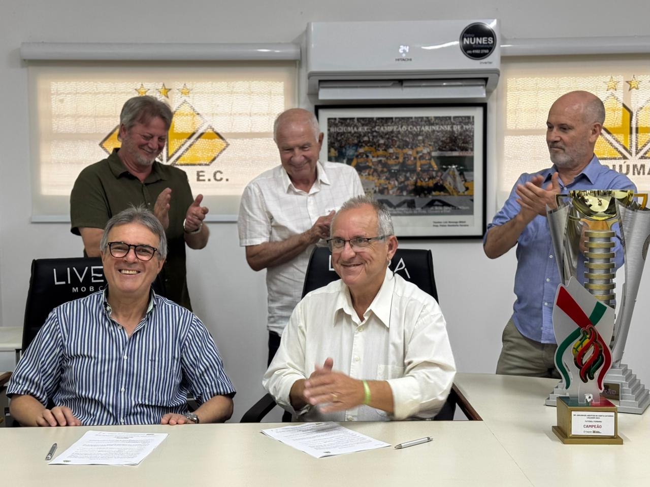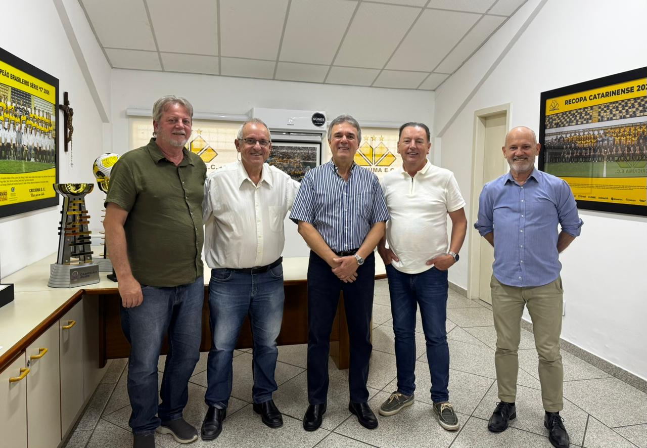 Na manhã desta segunda-feira (08/12), o Criciúma Esporte Clube oficializou a renovação da parceria com a Brametal para 2026. O encontro aconteceu na Sala da Presidência do Estádio Heriberto Hülse e contou com a presença do presidente do clube Pedro Paulo Canella, do diretor de marketing Jairton Manique Barreto, do diretor comercial Gilmar Cechet, do diretor adminstrativo Anselmo Freitas, e do diretor de patrimônio Deoclésio Pavei. Representando a Brametal esteve presente o presidente do conselho, Ricardo Brandão.