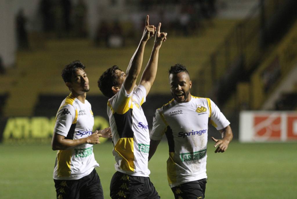 Natan comemorou o gol marcado no jogo. Foto: Fernando Ribeiro/www.criciuma.com.br