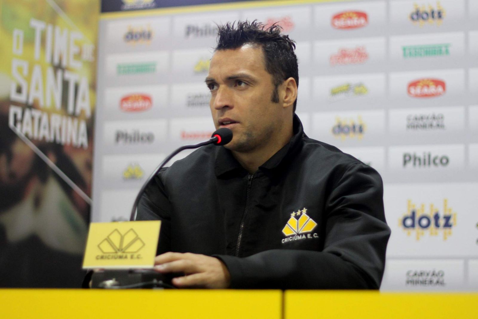 Daniel Carvalho concedeu entrevista coletiva. Foto: Fernando Ribeiro/criciumaec.com.br