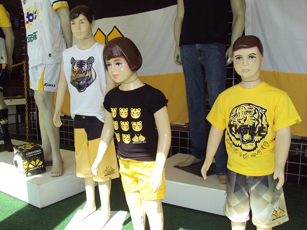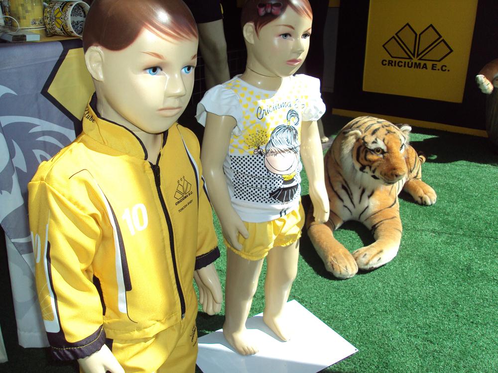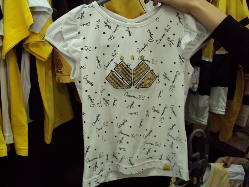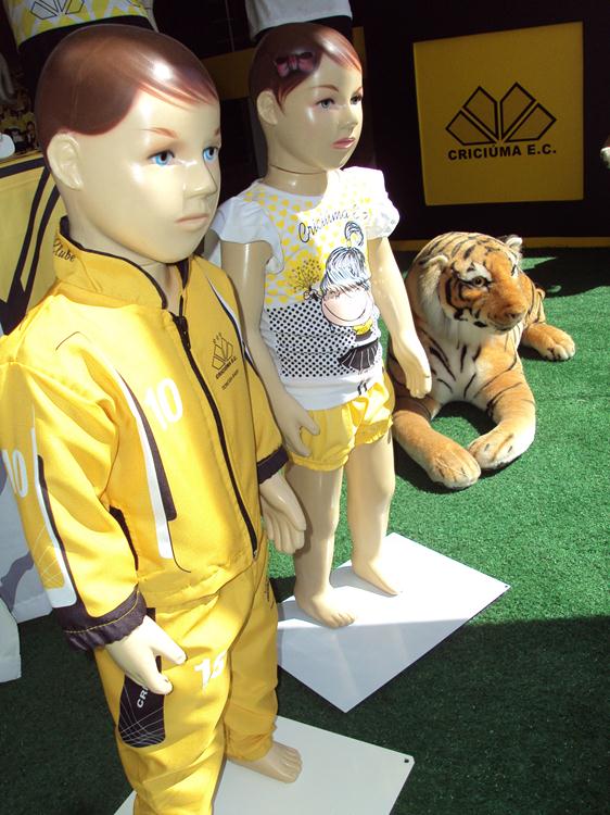Já para agradar os meninos há diversos itens. O mais procurado é o uniforme do Tigre, mas ainda há bolas, chinelos, kits com calção e camisetas infantis. Estão disponíveis também roupas de passeio tanto para o inverno quanto para o verão.