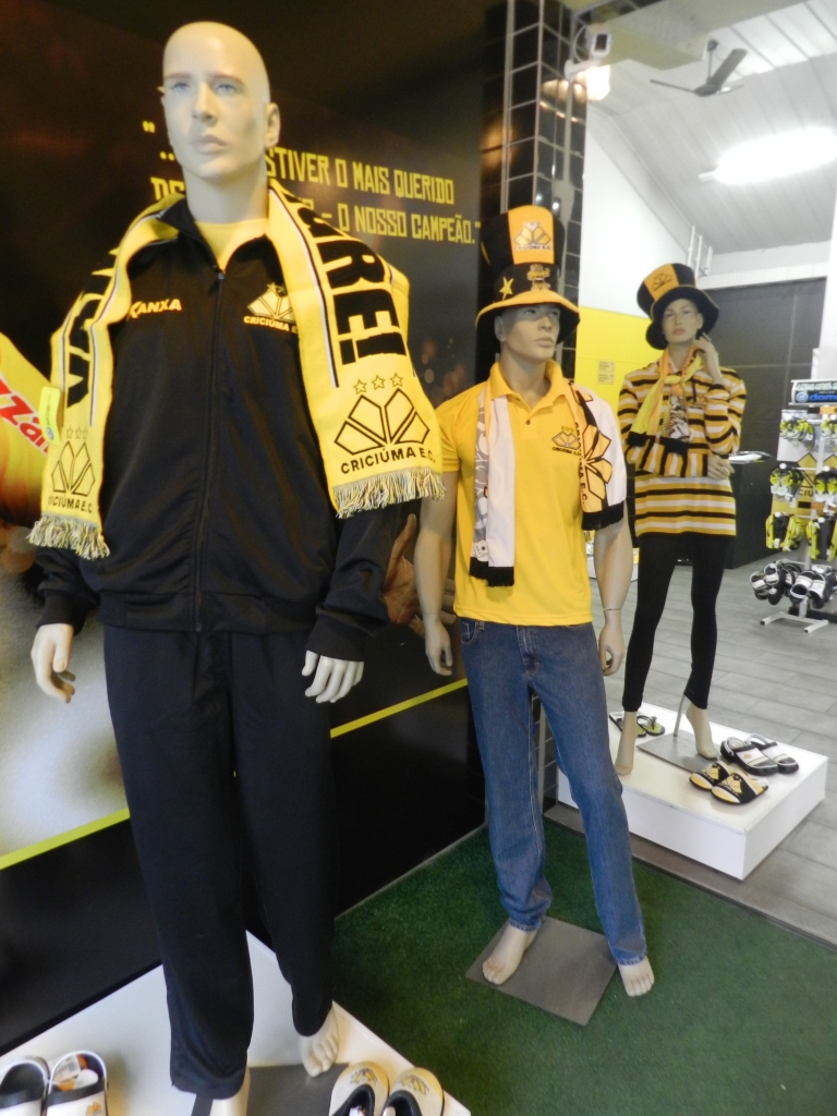 Algumas das opções para presente são para aquecer o ente tão querido neste inverno. O abrigo oficial do Criciúma é uma boa opção, assim como os moletons e blusas. Para quem quer apenas uma lembrança as tocas e cachecóis do Tigre também são boas alternaticas.