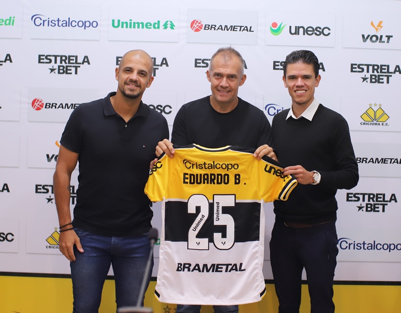 O Criciúma apresentou de forma oficial o seu novo comandante nesta quinta-feira (07/05). O técnico Eduardo Baptista, o seu auxiliar Júlio César Schiavon e o analista e auxiliar Lucas Matheus, concederam coletiva na Sala de Imprensa Clésio Búrigo, no estádio Heriberto Hülse. Ao lado dos novos profissionais estiveram o executivo de futebol Ítalo Rodrigues e o presidente Valter Minotto. A entrevista foi transmitida ao vivo na TV Tigre, o canal oficial do clube no YouTube.