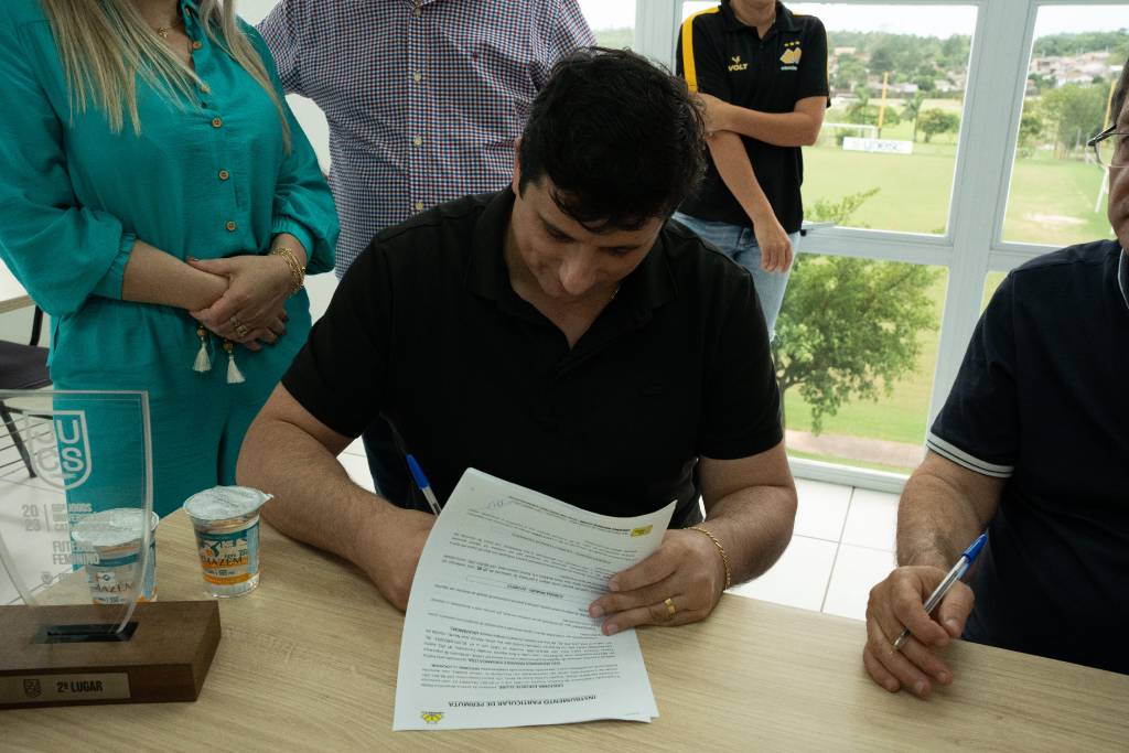 A assinatura ocorreu no Centro de Treinamento Antenor Angeloni e contou com a presença dos sócios Márcio José Neotti e Sandra Manenti, o presidente do Criciúma, Vilmar Guedes, o vice-presidente de patrimônio do Criciúma, Antonio Deoclésio Pavei, a diretora de futebol feminino, Giordana Zeferino Mariano, a técnica do time feminino, Bina Cassol, a auxiliar técnica, Renata Machado, a assistente social, Fabiana Iraci, e a gerente comercial e de marketing, Viviani Olimpio.