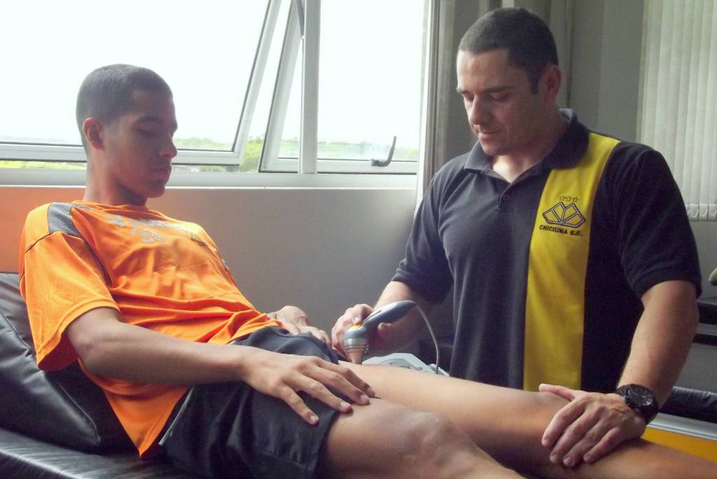Gomes durante atendimento a um atleta da base. Foto: Divulgação/www.criciuma.com.br
