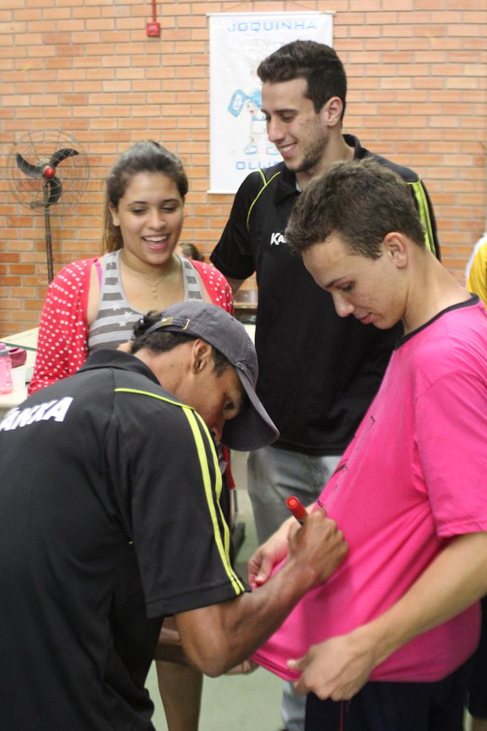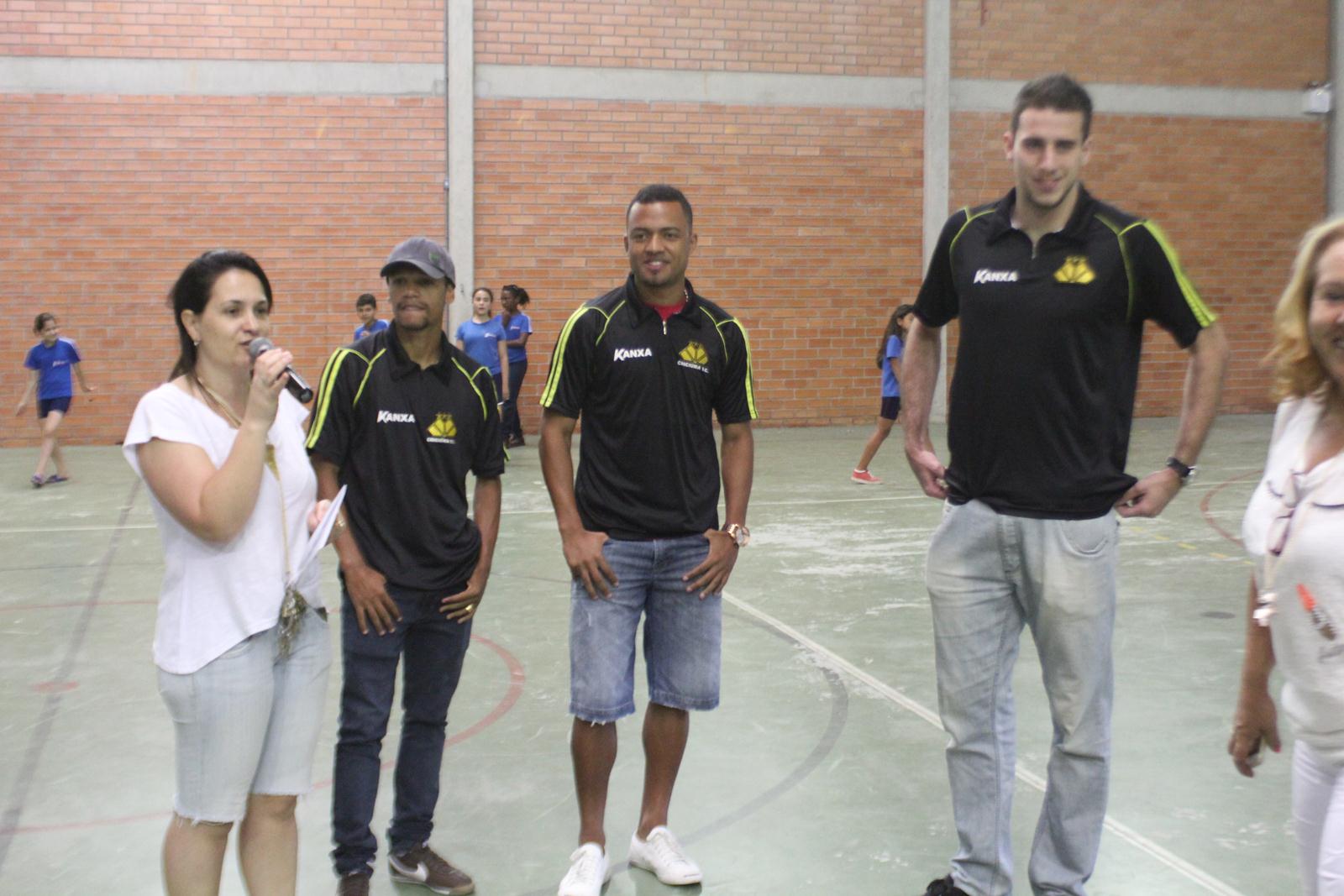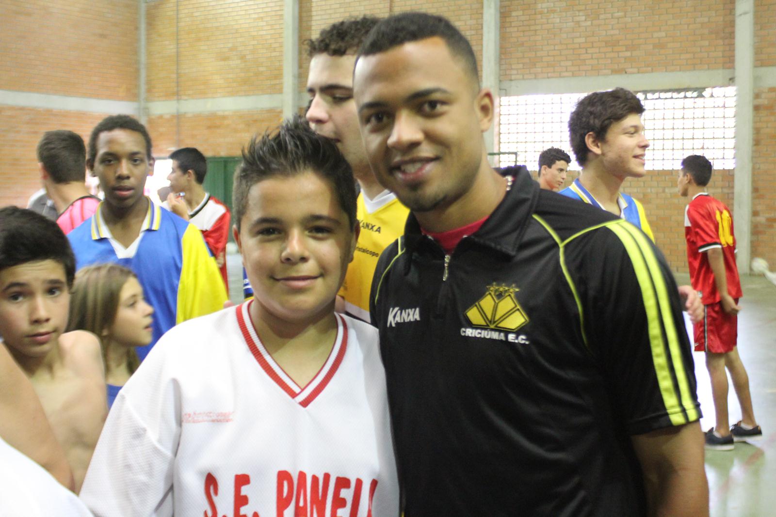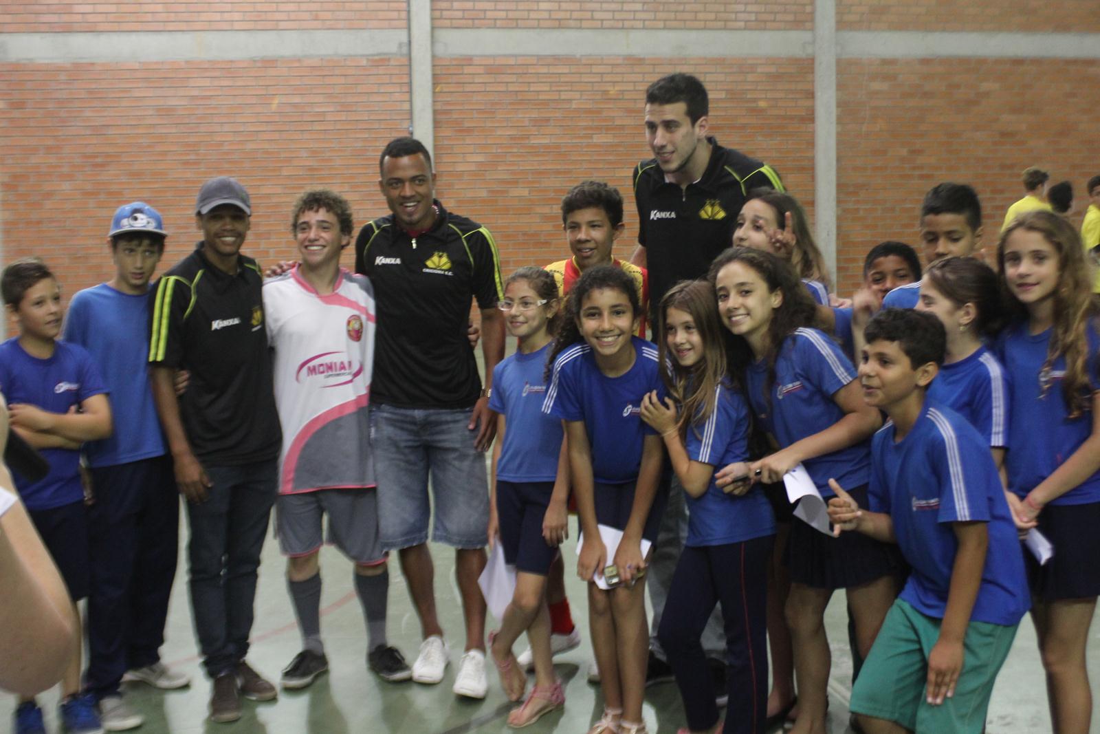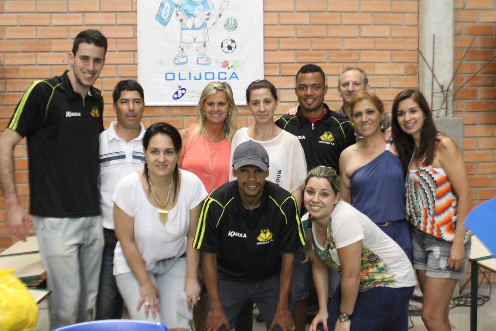 A Escola de Educação Básica Joaquim Ramos, de Criciúma, está realizando as Olimpíadas Escolares (Olijoca). Alunos de diversas idades participam da competição e, na manhã desta quinta-feira (28/11), receberam a visita dos jogadores do Criciúma. Fabinho, Helton Leite e João Vitor fizeram a alegria dos alunos e funcionários da instituição.