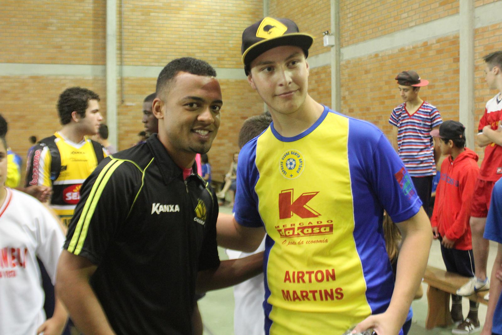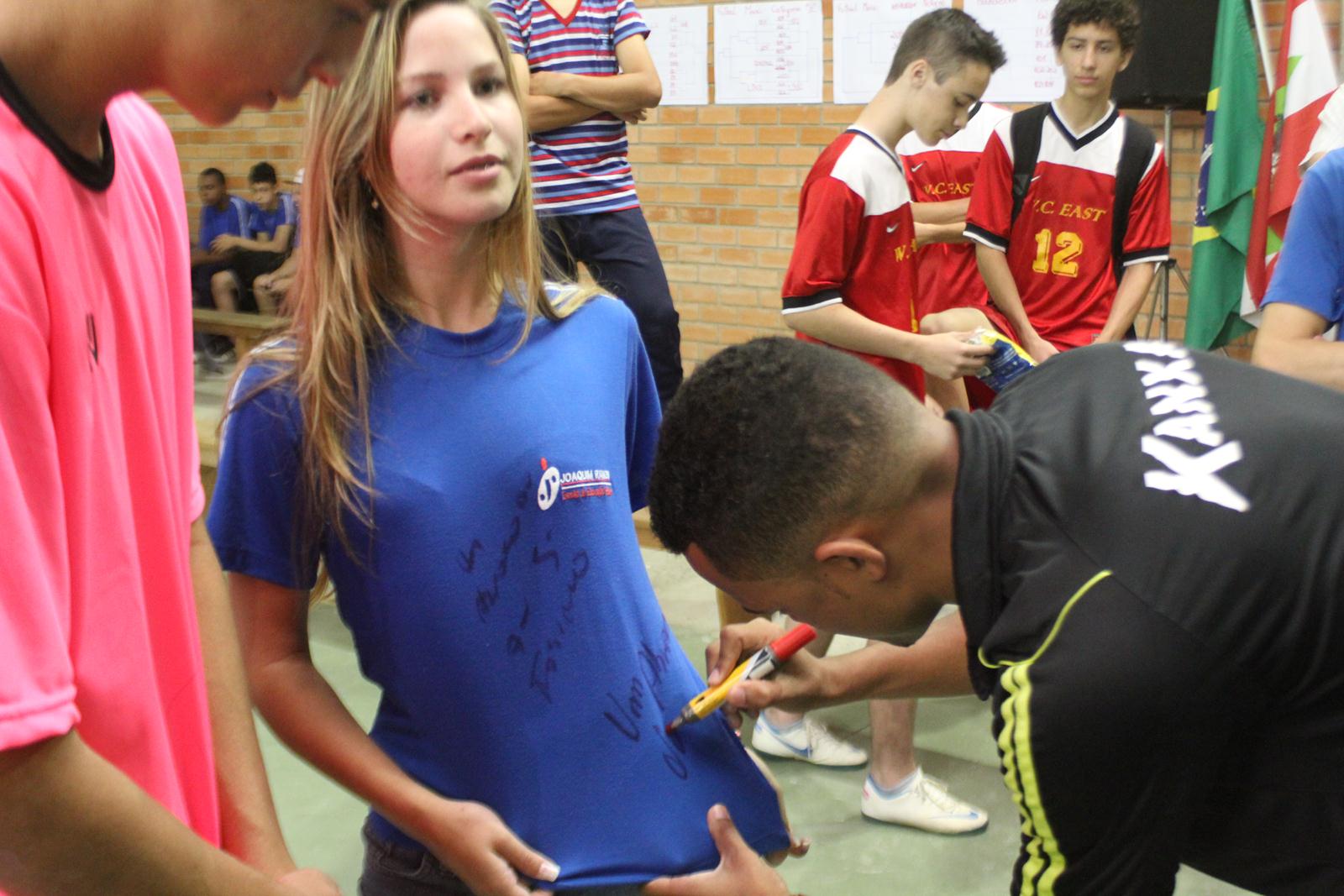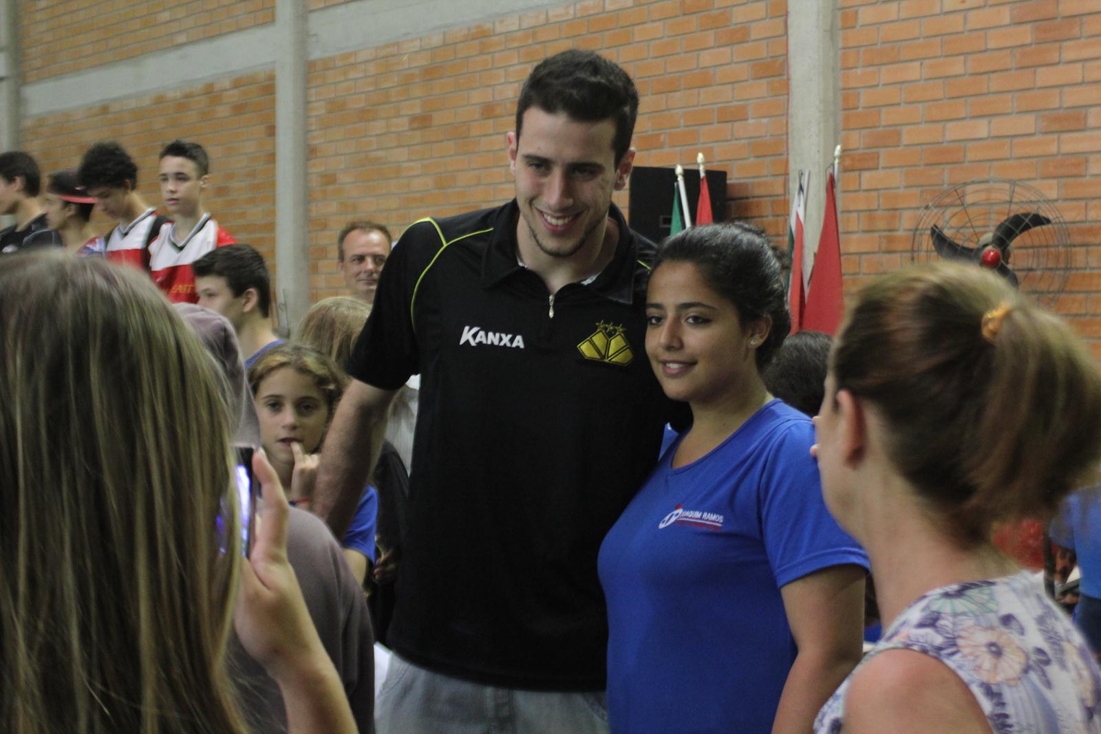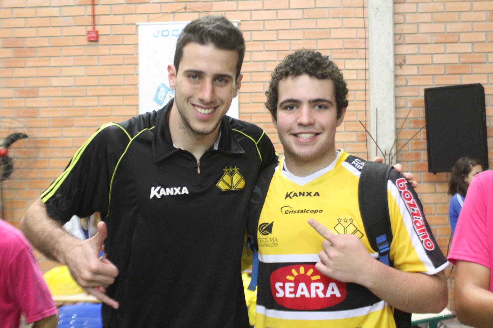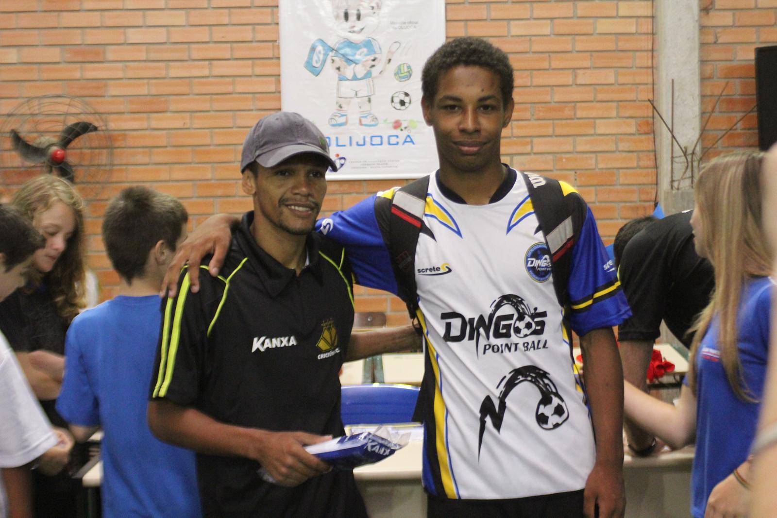 A Escola de Educação Básica Joaquim Ramos, de Criciúma, está realizando as Olimpíadas Escolares (Olijoca). Alunos de diversas idades participam da competição e, na manhã desta quinta-feira (28/11), receberam a visita dos jogadores do Criciúma. Fabinho, Helton Leite e João Vitor fizeram a alegria dos alunos e funcionários da instituição.