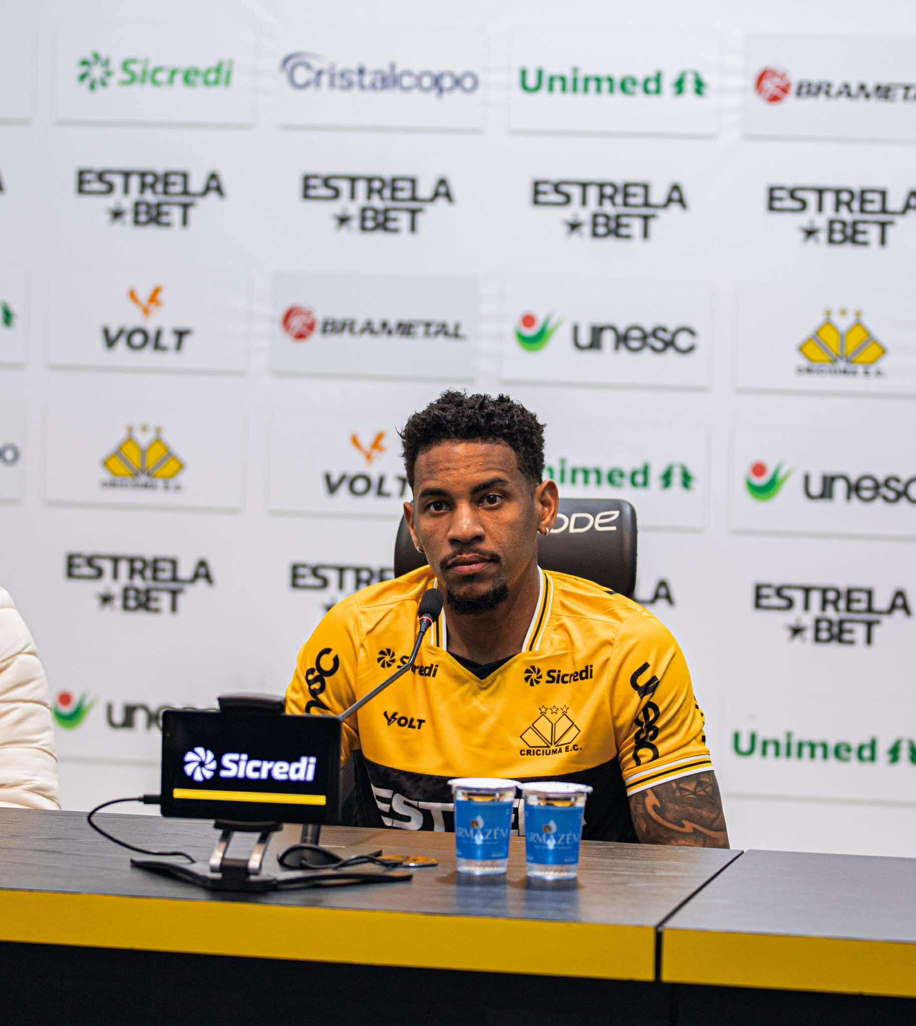 O Criciúma apresentou oficialmente na tarde desta terça-feira (24/06) o último reforço da janela de transferências. O lateral-esquerdo Felipinho concedeu coletiva na Sala de Imprensa Clésio Búrigo, no estádio Heriberto Hülse, e falou dos objetivos na disputa da Série B do Campeonato Brasileiro. O presidente Valter Minotto e o executivo de futebol Ítalo Rodrigues estiveram presentes na apresentação que teve transmissão ao vivo na TV Tigre.