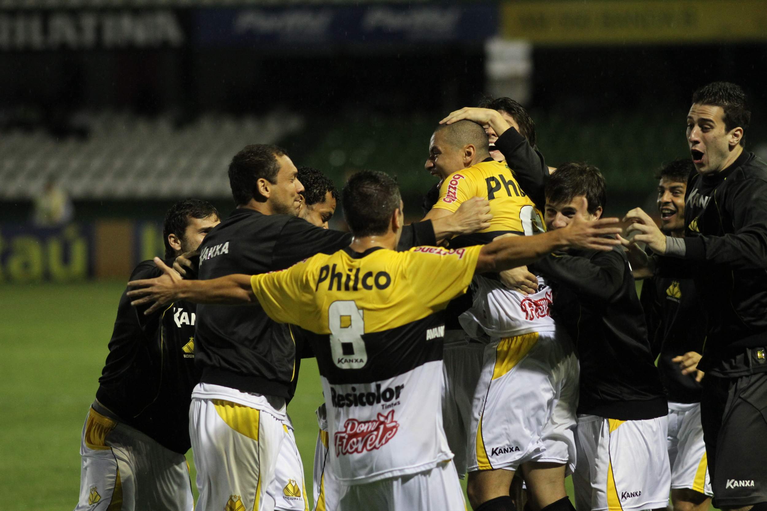 Jogadores comemoram o primeiro gol. Foto: Fernando Ribeiro/criciumaec.com.br