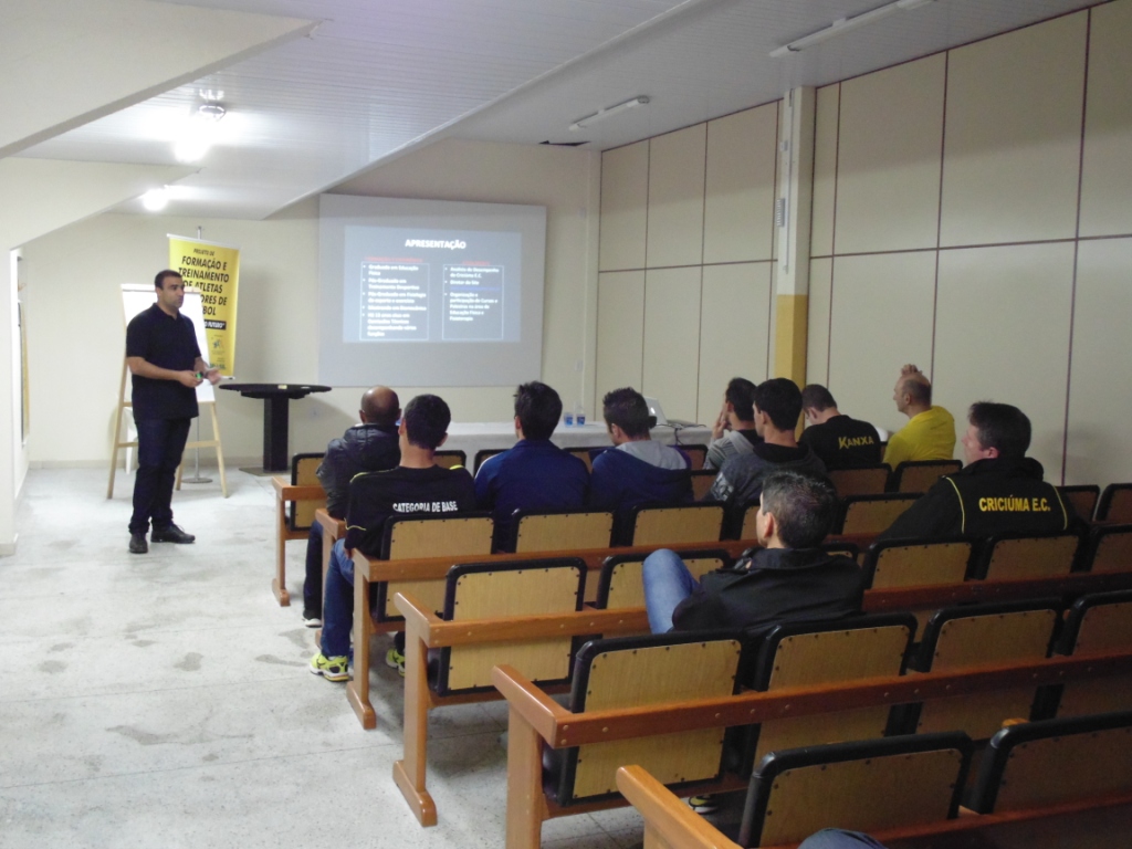 Os profissionais da base do Criciúma estão participando do seminário “Construindo Uma Nova Categoria de Base”. Nesta terça-feira (06/08) eles acompanharam palestra sobre treinamento sistêmico e análise de desempenho. Os encontros ocorrem no auditório do Criciúma.