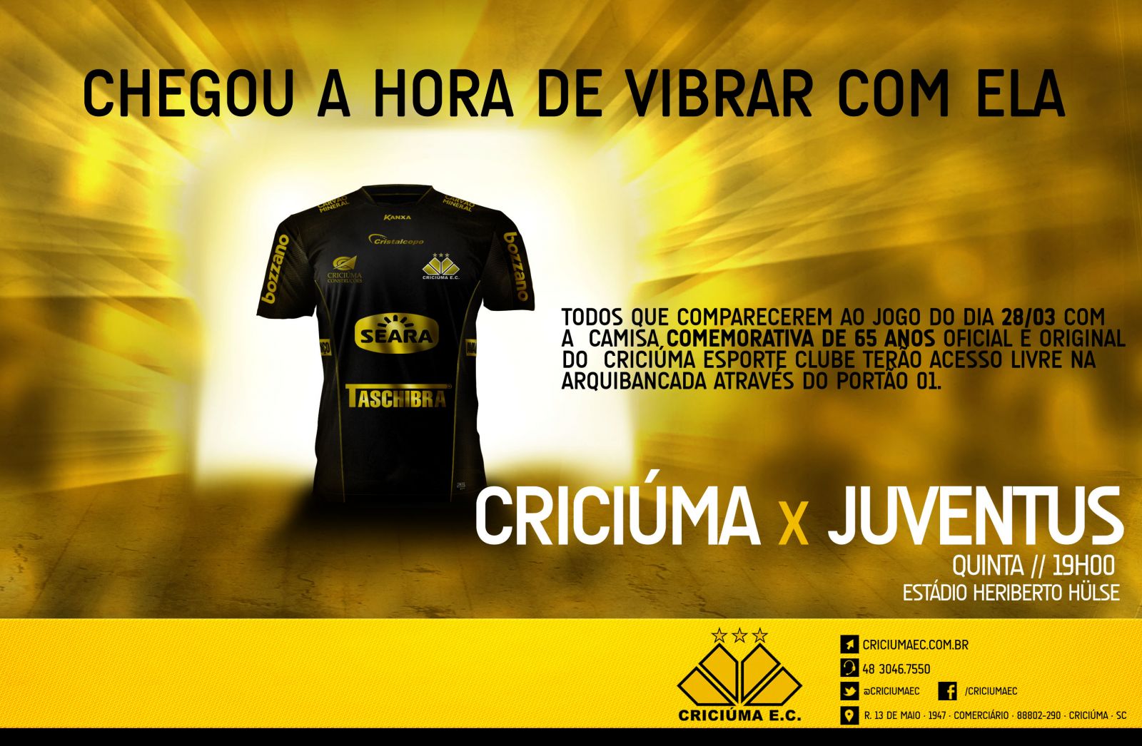 Para a partida desta quinta-feira (28/03), às 19 horas, contra o Juventus, no estádio Heriberto Hülse, pelo Campeonato Catarinense, o Criciúma fará uma promoção especial. Os torcedores do Tigre que forem ao jogo com a camisa comemorativa original dos 65 anos do clube entrarão nas arquibancadas gratuitamente. A entrada será exclusiva no portão 1 do estádio.