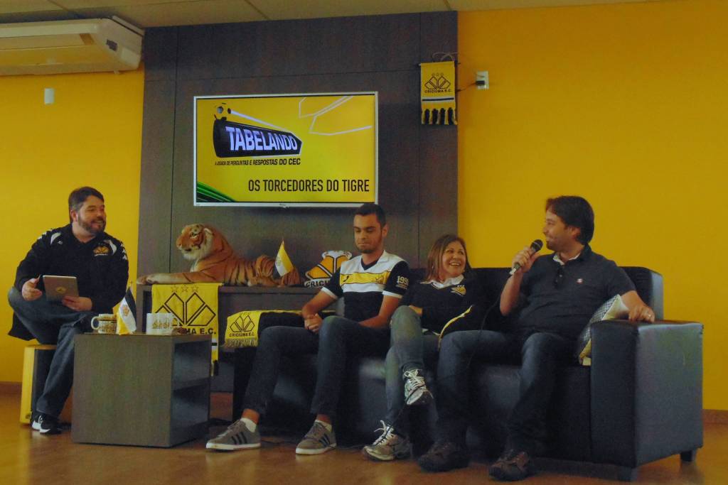 A 11ª edição do Tabelando, da TV Tigre, será com sócios do Criciúma, que irá ao ar nos próximos dias. Irão participar do programa, os associados João Luiz Domingos, 32 anos, Elisabeth Giusti, 66 anos, e Giovane Marcelino, 19. A gravação ocorreu na manhã desta segunda-feira (24/08), no Centro de Treinamento, no bairro Cristo Redentor.