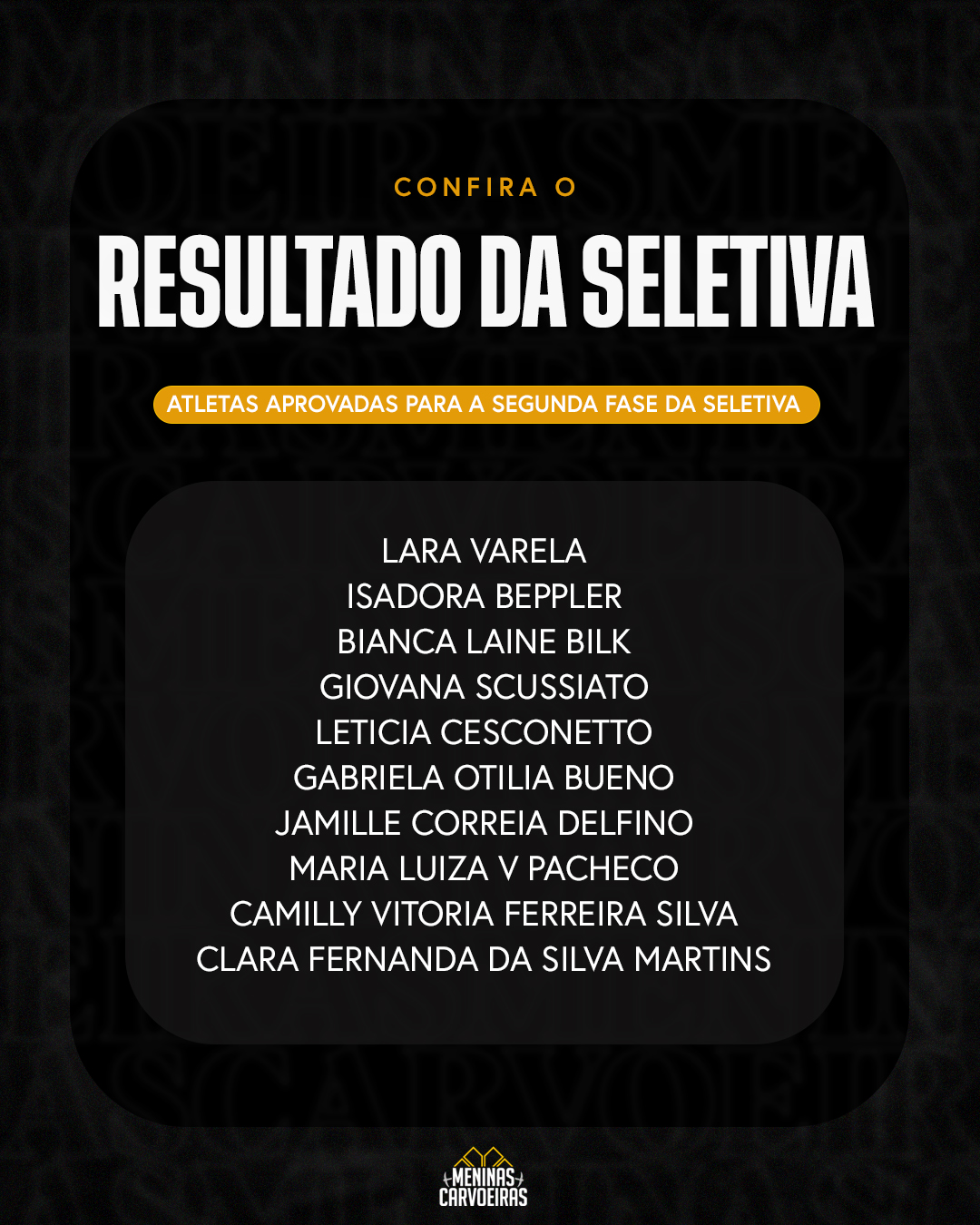 O evento contou com a participação de mais de 100 jovens atletas onde 21 meninas foram selecionadas para a segunda fase do processo seletivo: a fase de monitoramento. Nessa etapa, as jogadoras aguardam o contato da equipe responsável para darem continuidade ao processo de avaliação.