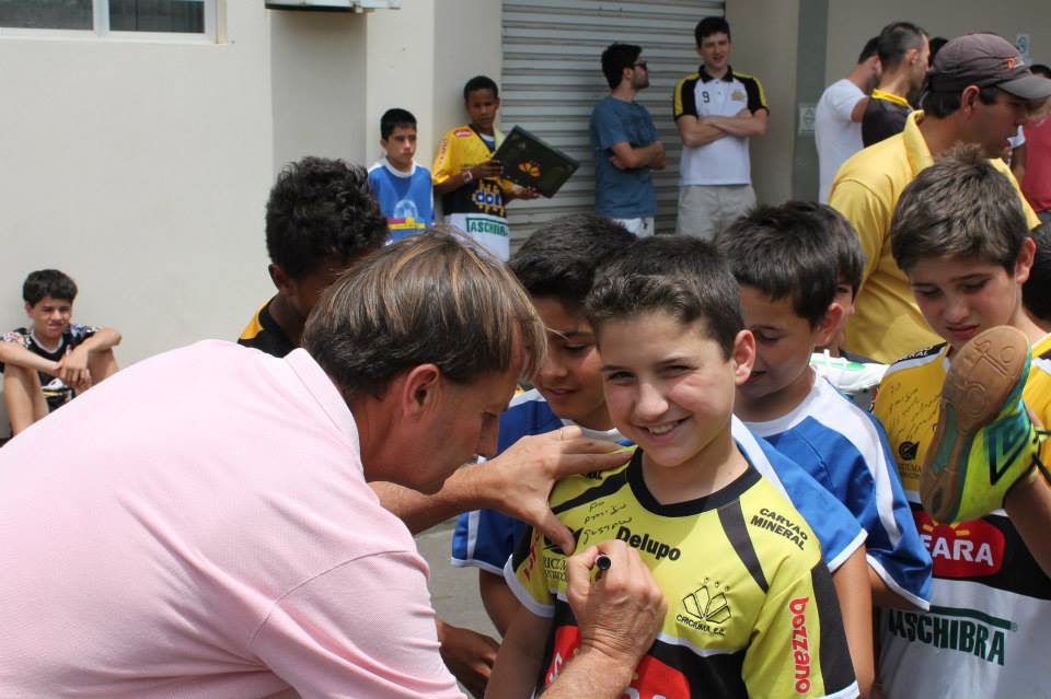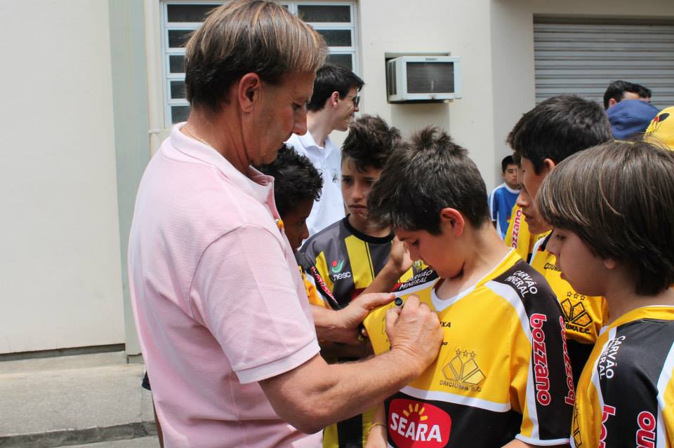 Sarandi também distribuiu autógrafos. Foto: Divulgação / AçãoMais/criciumaec.com.br