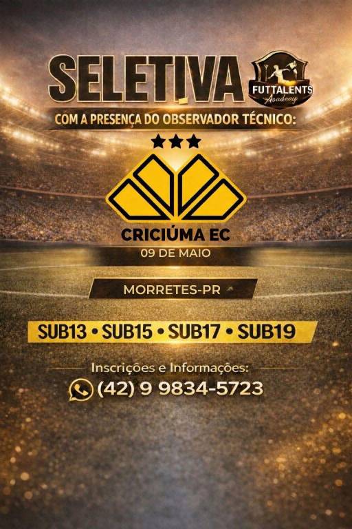 O Criciúma realizará uma avaliação para as suas divisões de base em Morretes (PR). No dia 9 de maio ocorre uma seletiva para novos atletas do Tigre para as categorias de Sub-13 a Sub-19. O observador técnico da base carvoeira, Benevan Ribeiro, estará presente acompanhando os testes.