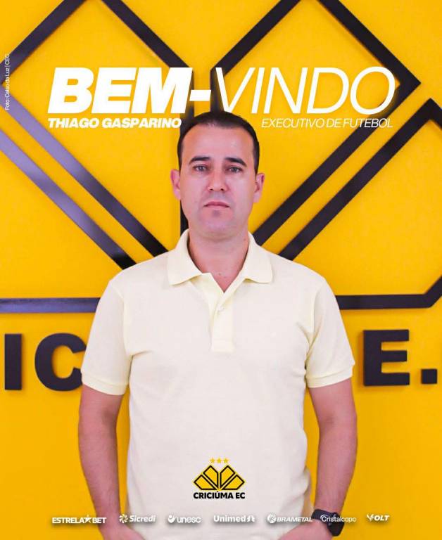 O Criciúma anunciou nesta terça-feira (16/12) o seu novo executivo de futebol para a próxima temporada. Com ampla experiência no cenário nacional e internacional, Thiago Gasparino é o nome para o futebol profissional do Tigre para o ano de 2026. O novo executivo já está no Centro de Treinamento Antenor Angeloni e teve o primeiro contato com o grupo de atletas e comissão técnica carvoeira.