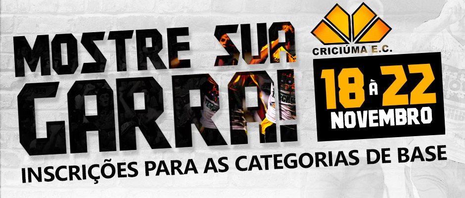 Os garotos que possuem o sonho de se tornar jogador de futebol terão uma chance de fazer parte das categorias de base do Criciúma ainda este ano. Isso porque o clube irá realizar avaliações com jovens atletas para descobrir novos talentos que serão integrados as equipes infantil e juvenil do Tigre. As inscrições para os testes iniciam na segunda-feira (18/11) e encerram na sexta-feira (22/11).
