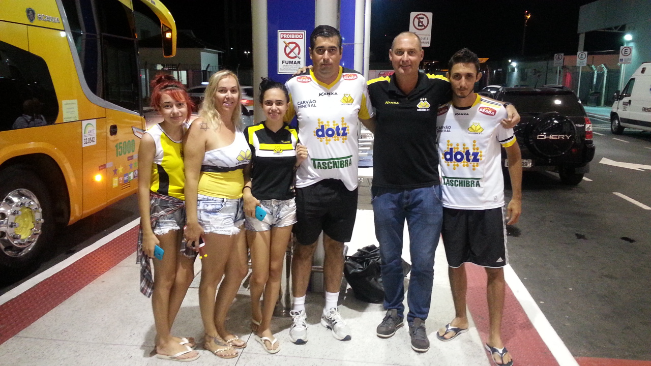 Na chegada ao aeroporto de Vitória (ES), um grupo de cinco criciumenses aguardava a delegação do Tigre. O torcedor Victor Martins, 39, mora há quatro anos na capital do Espírito Santo, foi dar apoio ao grupo tricolor acompanhado da esposa Patrícia, das filhas Kaline e Katarine, e do sobrinho Maicon. O quinteto estará na quarta-feira em Águia Branca para torcer pelo Tigre.