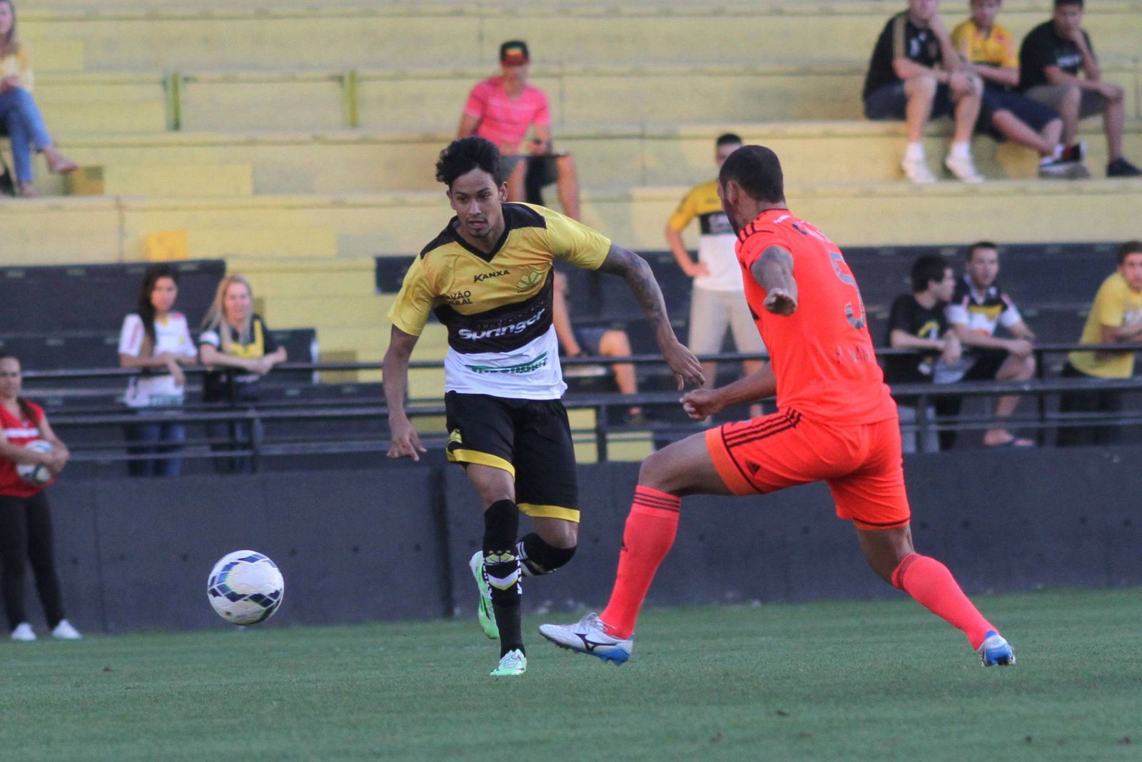 O Tigre acabou sofrendo o gol aos oitos minutos do primeiro tempo. O lateral direito Patric abriu o placar do duelo. O Criciúma criou duas chances para empatar a partida. A primeira veio aos 13. Lucca cruzou e Rafael Pereira cabeceou no canto direito de Magrão, mas a bola foi para fora. A segunda oportunidade foi aos 37 minutos. Lucca cobrou escanteio e Iago Maidana tocou de cabeça por cima do travessão.