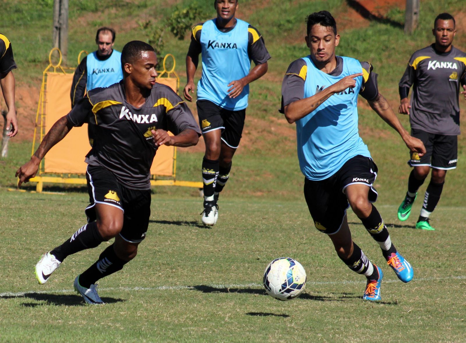 Eduardo e Lucca durante atividade no CT. Foto: Leonardo Zanin/Criciúma E.C.