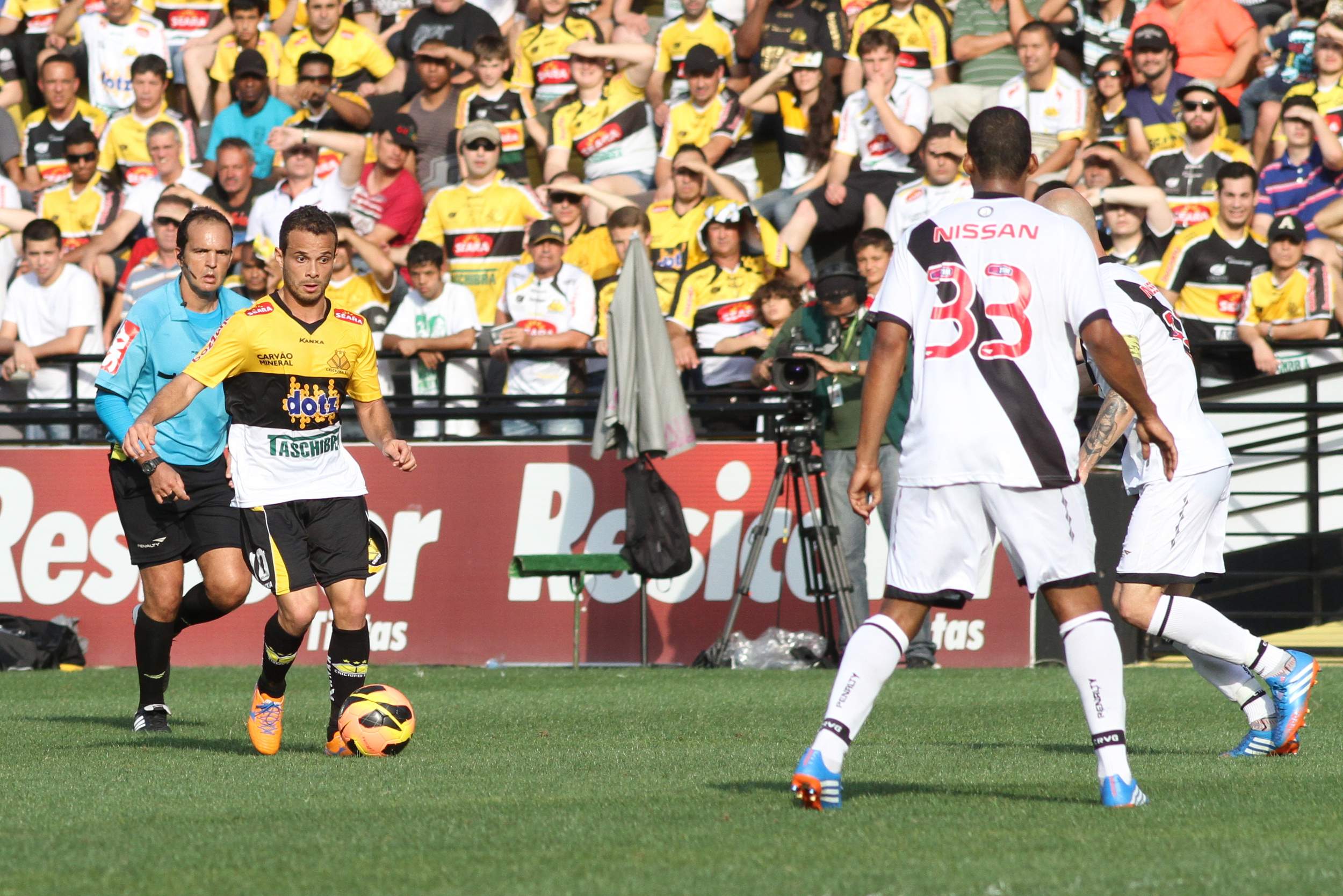 O Criciúma recebeu o Vasco da Gama na tarde deste domingo (13/10) e conquistou mais três pontos no estádio Heriberto Hulse. Com o apoio da torcida, o Tigre venceu a equipe carioca pelo placar de 3 a 2 e ganhou uma posição na tabela de classificação do Campeonato Brasileiro da Série A. Os gols do Criciúma foram marcados por Wellington Paulista (2) e Lins. Com o resultado o Tigre chegou aos 32 pontos na competição.