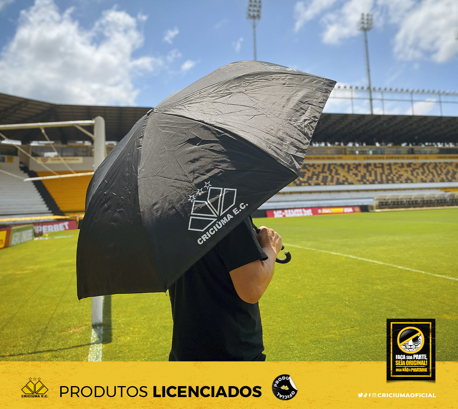 Para ter certeza de que você está levando um produto licenciado pelo Criciúma, procure o selo holográfico, indicando que aquele produto é oficial. O comércio ilegal e não-autorizado da marca aplicada em produtos, é crime. Portanto, denuncie sempre que encontrar alguém oferecendo qualquer mercadoria não-licenciada com a marca do Criciúma E.C.