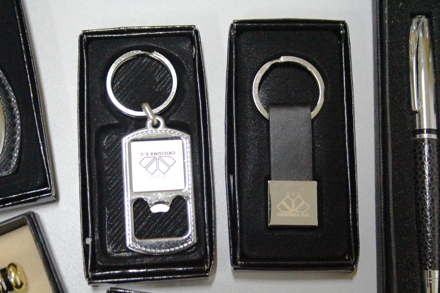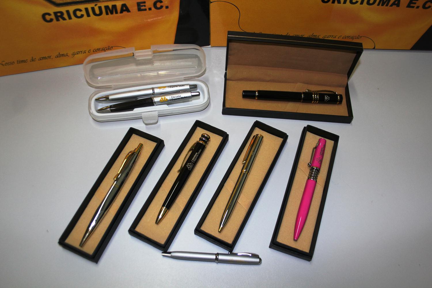 Entre as novidades também estão os estojos. Alguns são compostos por canetas, outros por caneta e lapiseira, ou ainda, há outro modelo com caneta, chaveiro e canivete. Visite a Tigre Maníacos e confira, além dos novos produtos, mais de 600 itens oficiais do Criciúma Esporte Clube.