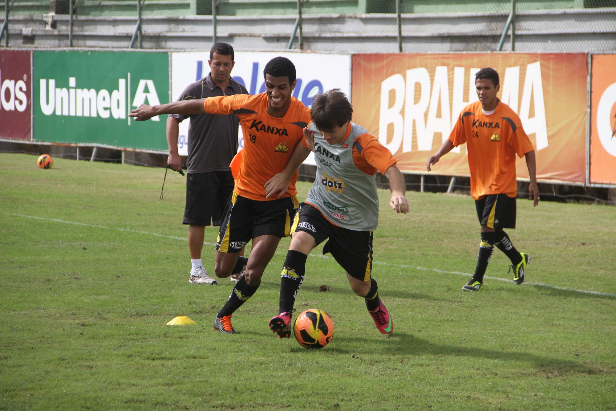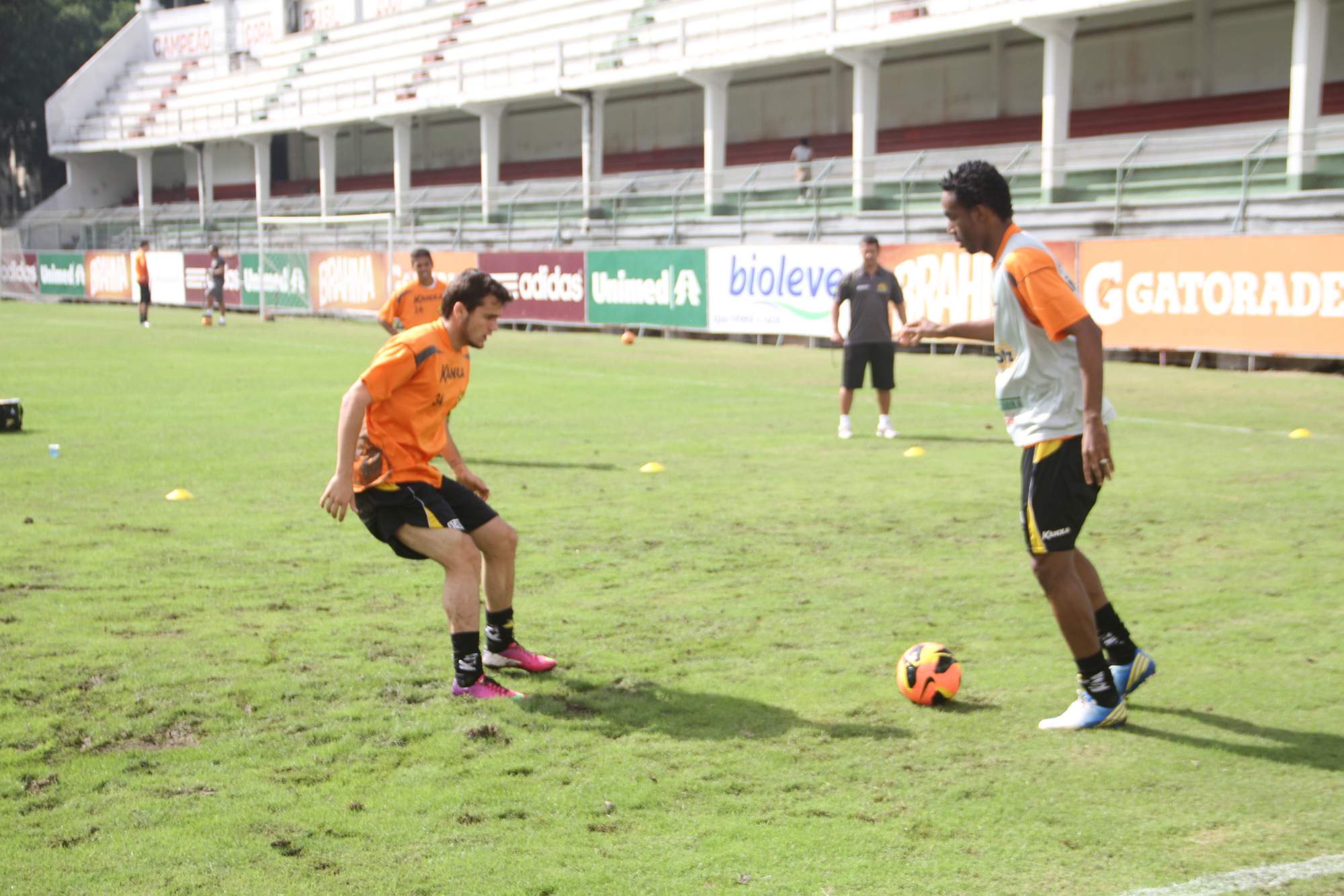 Além de trabalhos físicos na academia, ocorreu no gramado uma atividade com bola.