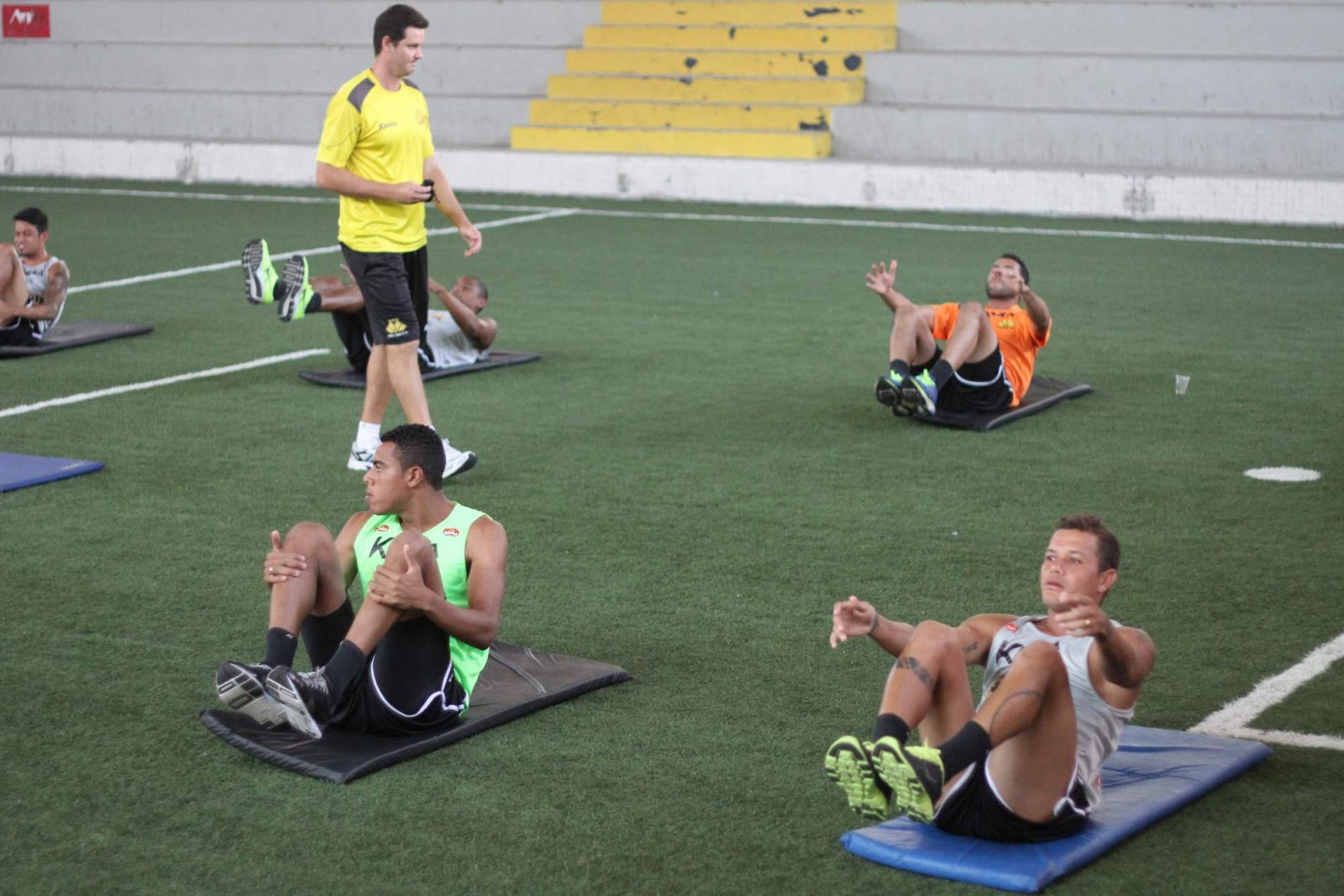 Atletas fizeram treino de core no ginásio. Foto: Fernando Ribeiro/www.criciumaec.com.br