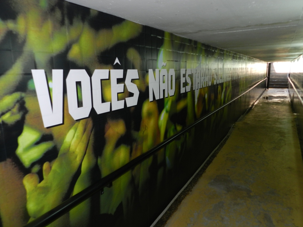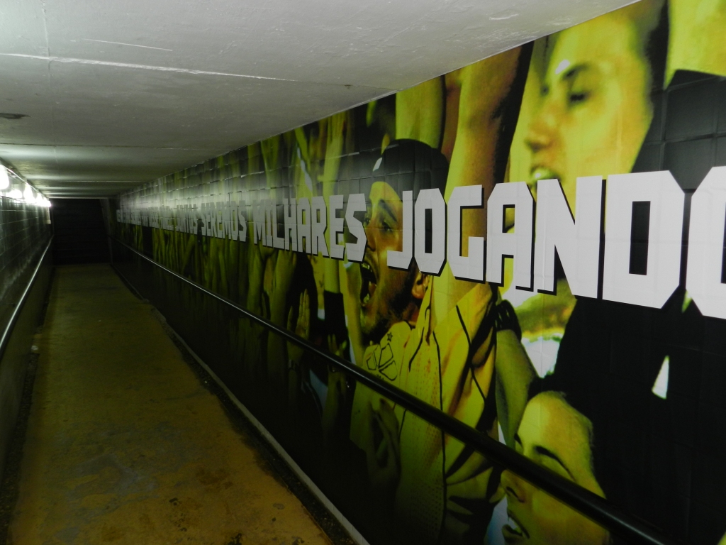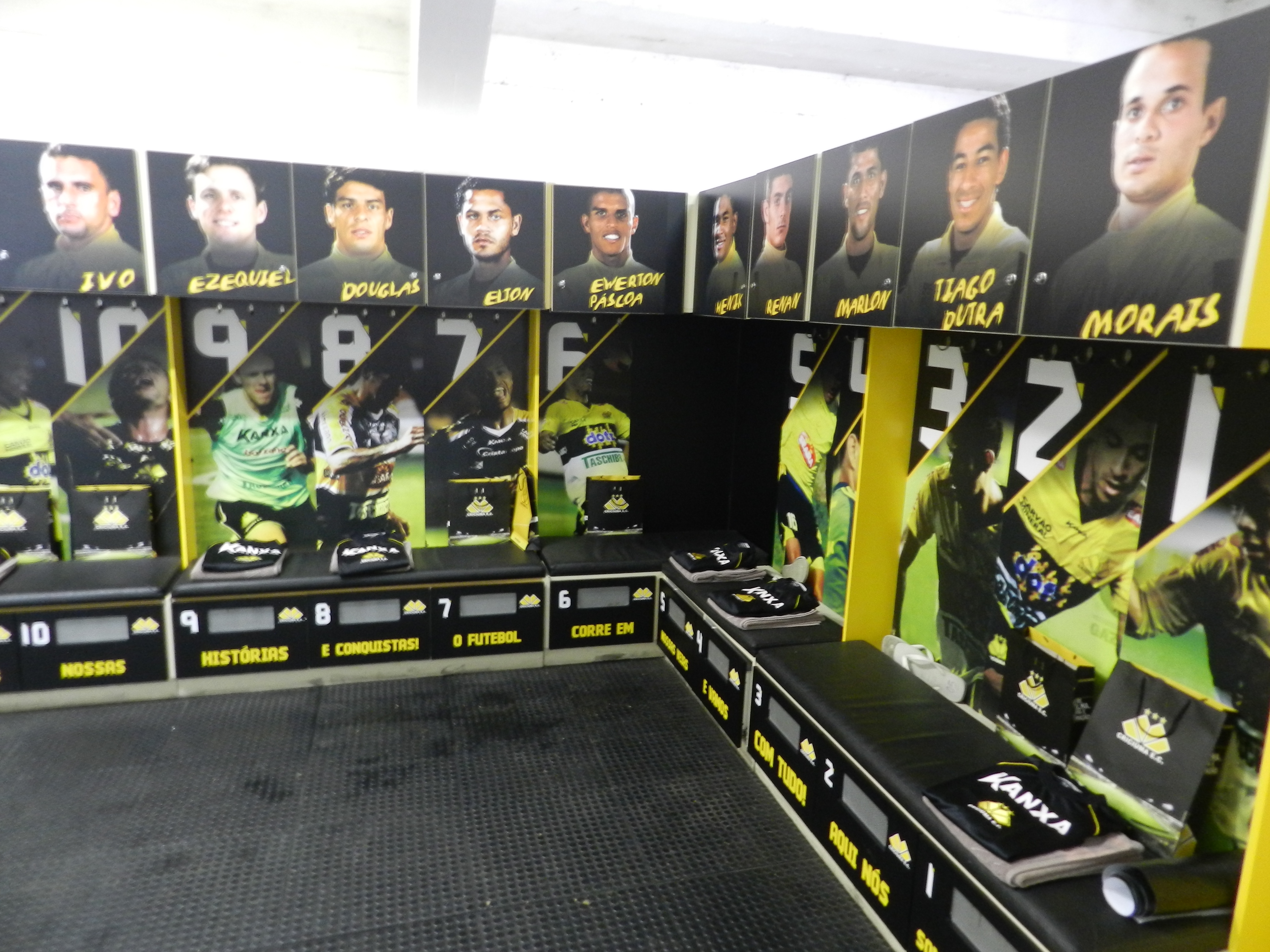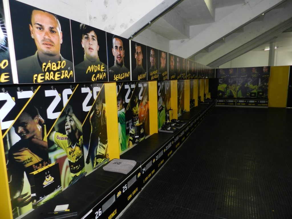 Além dos armários, a entrada do vestiário e o túnel de acesso ao gramado também foram personalizados para incentivar os jogadores na hora de entrar em campo.