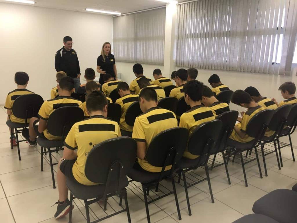 A categoria Sub-13 do Criciúma realizou na tarde desta sexta-feira (31/05), no auditório do Centro de Treinamento Antenor Angeloni, uma atividade com a psicóloga do clube, Francinéli Becker. Seguindo o calendário extracampo das categorias de base, os garotos trabalharam questões que envolvem confiança, organização e comunicação dentro de uma equipe.