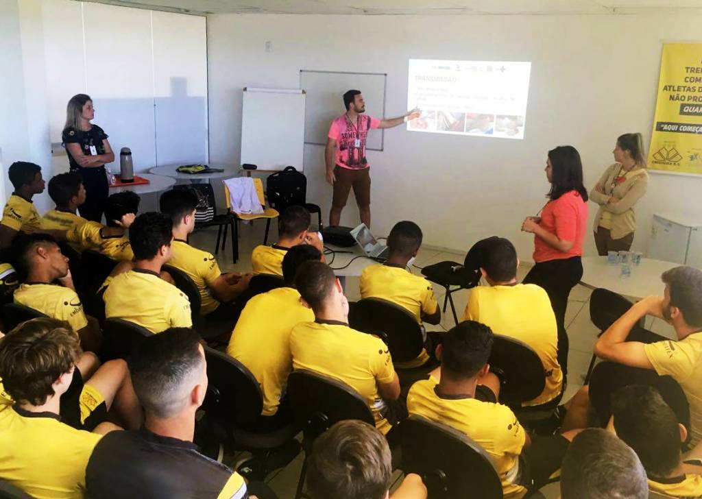 Os jogadores das categorias Sub-17 e Sub-20 do Criciúma tiveram uma palestra nesta terça-feira (31/10), no auditório do Centro de Treinamento, no bairro Cristo Redentor. Residentes multiprofissionais falaram sobre Doenças Sexualmente Transmissíveis. A equipe de palestrantes contou com duas enfermeiras e dois profissionais de educação física. Foram abordados diversos assuntos, entre os quais os métodos de prevenção e as consequências sofridas pelos atletas em contato com as DST’s.