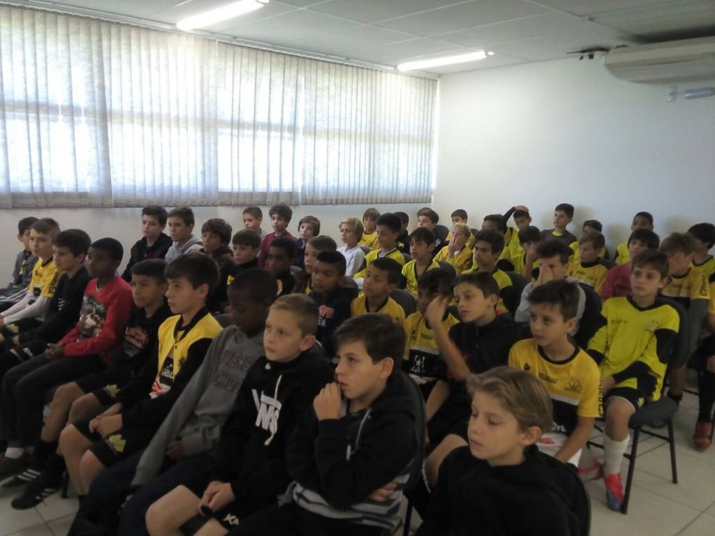 A tarde desta quarta-feira (27/04) iniciou um pouco diferente para os jovens atletas das categorias Sub-11, Sub-12 e Sub-13 do Criciúma. Antes dos treinos programados, todos se reuniram no auditório do Centro de Treinamento para uma palestra motivacional com o professor Neno. Antes, o presidente do clube, Jaime Dal Farra, conversou com os pequenos, que são o futuro do Tigre.