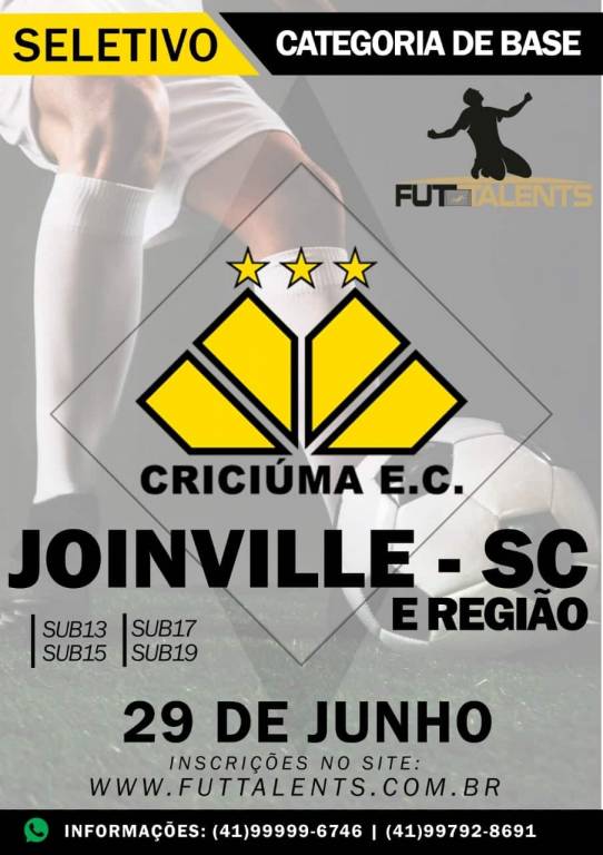 Mais uma avaliação será realizada para as divisões de base do Criciúma. No dia 29 de junho irá ocorrer uma seletiva para novos atletas do Tigre para as categorias de Sub-13 a Sub-19 em Joinville, região norte de Santa Catarina. O observador técnico da base carvoeira, Benevan Ribeiro, estará presente.