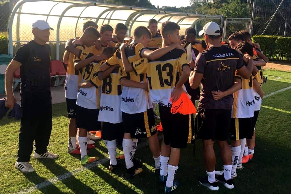 A categoria Sub-14 do Criciúma estreou com vitória no Sul-Brasileiro BG Prime. Jogando contra o Internacional na tarde desta quinta-feira (18/04), no Centro de Treinamento Alvorada, em Porto Alegre, a equipe comandada pelo técnico Brenno Basso venceu por 2 a 1. Os gols carvoeiros foram marcados por Pedro, no primeiro minuto de jogo, e por Leonardo, aos 27 minutos da etapa final.
