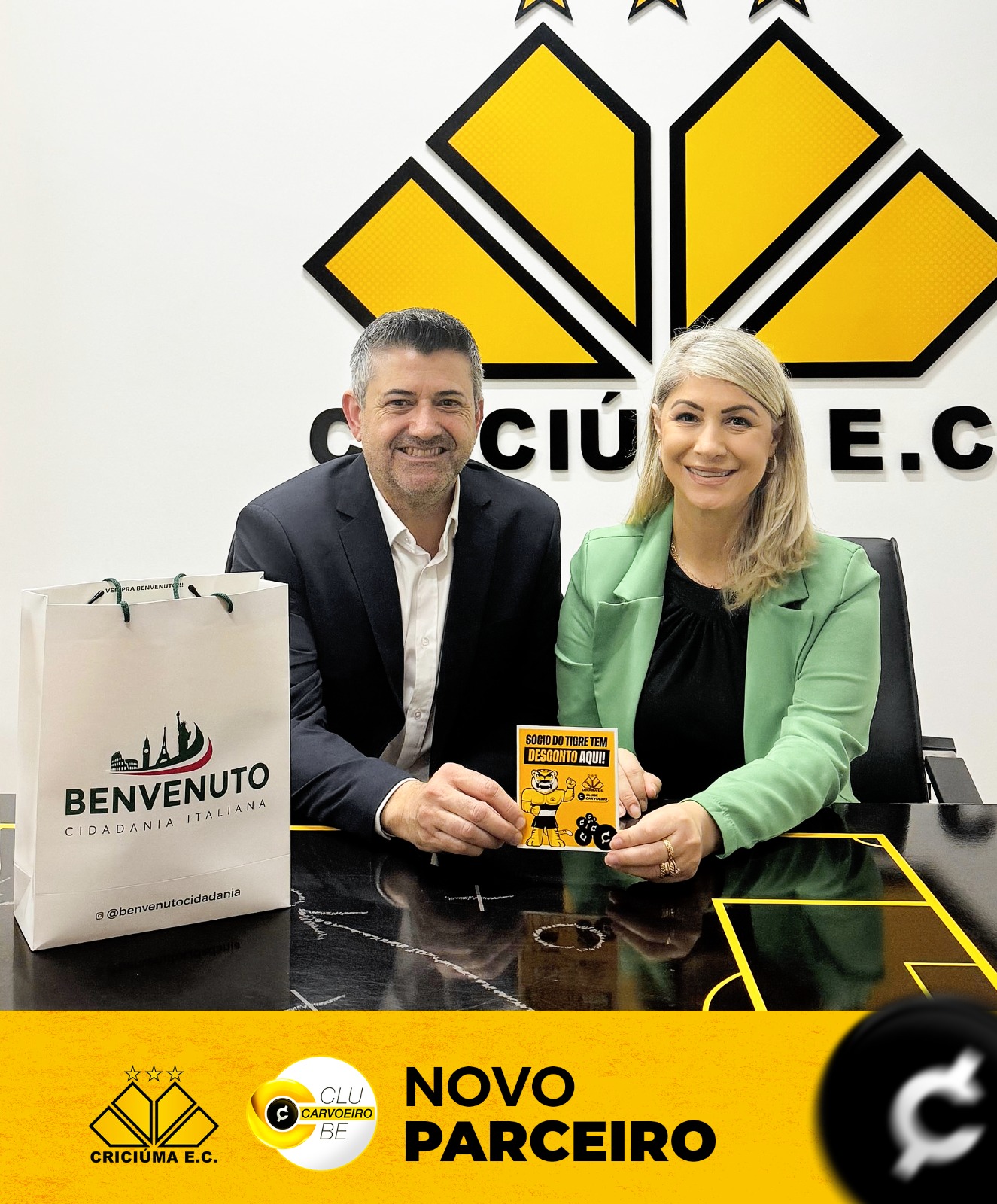 A Benvenuto Cidadania Italiana é a mais nova integrante do Clube Carvoeiro, uma iniciativa que oferece benefícios exclusivos aos sócios do Tigre. O acordo foi oficializado no estádio Heriberto Hülse, que contou com a presença dos representantes da Benvenuto, Nivaldo Manoel e Mag Moraes.